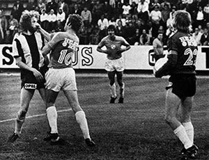 Med stöttepelare som t ex Tom Turesson började ett framtida topplag skönjas. Unga spelare som Klas Johansson, Thomas Dennerby och Michael Andersson kom fram de här åren. Hammarby spelade av vårsäsongen som det hyfsat stabila mittenlag man var. Med tabellraden 3-4-6 parkerade man på en ganska trygg 9:e-plats, tre poäng från nedflyttning. Efter ett par förluster i höstinledningen drogs laget in i bottenstriden. Några matcher med poäng svepte bort det akuta hotet, men var runt den 20:e omgången bland de sju lag som slogs om nytt kontrakt. Segrar mot Örebro och Örgryte i omgång 22 och 23 säkrade i praktiken spel i allsvenskan. Bajens bästa målskytt i allsvenskan den här säsongen var Jan Sjöström med 10 mål. Med det hamnade han delad nia i skytteligan. Vann gjorde Östers Jan ”Lill-Damma” Mattsson med hela 31 mål. Thom Åhlund och Mats Werner var med i den U23-trupp som åkte till Japan för träningsspelande i början av mars. Werner gjorde matchens enda mål den 2 mars på Olympiastadion i Tokyo. De övriga matcherna slutade 4-1 och 2-0. Bägge Bajenspelarna spelade hela matcherna. Motståndarlagens namn är dock höljda i dunkel. Även Gunnar Wilhelmsson figurerade i U23-landslaget. Allsvenskan750412 (Fotbollsstadion)Hammarby-Öster 1-2 (0-2) Annons 0-1 8 Tommy Evesson (Håkan Arvidsson), 0-2 36 Tommy Evesson (Håkan Arvidsson), 1-2 63 Jan Sjöström straff Domare: Arne Axelsson, Skärblacka/Bo Eriksson och Sven-Erik Bergstrand, Norrköping Publik: 6 984 Om matchen: En riktigt dålig första halvlek avlöstes av en bättre andra. Hammarby hade till och med kunnat få oavgjort med lite tur. 750420 (Nya Ullevi) Örgryte-Hammarby 1-2 (0-0) 0-1 56 Jan Sjöström straff, 0-2 73 Tom Turesson (Jan Sjöström), 1-2 80 Örjan Persson straff Hörnor: 5-1 Domare: Rolf Arnshed, Trelleborg Publik: 4 249 Om matchen: Stark match där Hammarby var på väg till 3-0 då ÖIS fick en reduceringschans på straff. Tom Turesson bäst på plan. 750427 (Söderstadion) Hammarby-Åtvidaberg 2-2 (2-1) Annons 1-0 26 Dan Brzokoupil, 2-0 31 Jan Sjöström (Kenneth Ohlsson), 2-1 36 Reine Almqvist, 2-2 77 Lars-Göran ”Knalin” Andersson (Reine Almqvist) Domare: Bert Norman, Kvissleby/Bengt-Olof Hjoort och Ulf Carlsson, Västerås Publik: 7 059 Om matchen: Bra start av Hammarby som kunde ha ledat med större siffror efter en halvtimme. Åtvid kom dock tillbaka och kvitterade. 750504 (Landskrona IP) Landskrona-Hammarby 1-0 (0-0) 1-0 50 Sonny Johansson (Bo Augustsson) Domare: Sven Jonsson, Hudiksvall Publik: 3 934 Om matchen: Ingen märkvärdig match. Landskrona hade några fler chanser att göra mål. 750511 (Söderstadion) Hammarby-Elfsborg 2-1 (1-0) Biljett 1-0 25 Billy Ohlsson, 1-1 70 Dan Magnusson, 2-1 Johan Hult Domare: Wolfgang Samuelsson, Uddevalla/Göran Lundberg, Uppsala, J-O Malm, Märsta Publik: 5 545 Om matchen: Viktig rättvis tvåpoängare för Hammarby. Nye Johan Hult fick avgöra. 750515 (Fotbollsstadion) AIK-Hammarby 4-1 (2-0) Annons 1-0 30 Jan-Olof Wallgren (Tommy Lundh), 2-0 36 Ove Nilsson, 3-0 51 Ove Nilsson, 3-1 56 Jan Sjöström, 4-1 62 Tommy Lundh Domare: Erik Axelryd, Lomma/A Gustafsson, Spånga, T Andersson, Sundbyberg Publik: 28 835 Om matchen: Hammarby, med lånade svarta strumpor, hängde med i en halvtimme men kunde inte få igång sitt egna spel när AIK var i ledning. 750522 (Söderstadion) Hammarby-Norrköping 2-0 (1-0) 1-0 2 Jan Sjöström straff, 2-0 83 Kenneth Ohlsson (Jan Sjöström) Domare: Åke Persson, Mölndal/B Lindström och H Sunesson, Märsta Publik: 4 836 Om matchen: Kenneth Ohlsson firade stora triumfer mot Norrköping. Hans spel var landslagsmässigt. Trots det kunde Hammarby ha tappat en pinne. 750525 (Nya Ullevi) GAIS-Hammarby 3-1 (1-0) 1-0 26 Eine Fredriksson (Roger Gustafsson), 1-1 56 Thomas Sjöberg, 2-1 85 Eine Fredriksson, 3-1 87 Hasse Johansson Domare: Stig-Åke Tannerstig, Västerås Publik: 5 593 Om matchen: Hammarby kunde ha tagit en poäng efter en stark första halvlek men GAIS avslutning avgjorde. 750528 (Söderstadion) Hammarby-Sundsvall 0-0 Domare: Karl-Gösta Björkman, Lagan Publik: 4 451 Om matchen: En urusel match. ”4451 åskådare bör ha tapperhetsmedalj för att de stod ut med tillställningen”, menade DN. 750608 (Eyravallen) Örebro-Hammarby 2-1 (1-1) 0-1 5 Kenneth Ohlsson, 1-1 15 Jan Mossberg, 2-1 75 Jan Mossberg (Glenn Holm) Domare: Thorsten Gustavsson, Ljungby/R Larsson och T Skullman, Norrköping Publik: 5 654 Om matchen: Hammarby spelade en fin offensiv men hade inte flytet med sig. Fick inte med sig en rättmätig straff och hade tre bortdömda mål mot hemmalagets en. 750612 (Fotbollsstadion) Hammarby-Djurgården 1-2 (0-0) Program Annons 1-0 50 Thomas Sjöberg, 1-1 70 Håkan Stenbäck, 1-2 86 Ove Rübsamen Domare: Ulf Eriksson, Sollefteå/R Karlsson, Huddinge, T Molander, Spånga Publik: 20 327 Om matchen: Hammarbys match från första minut till sista – enligt Djurgården. DIF gjorde två turliga mål medan Hammarby brände massor av chanser. 750617 (Malmö Stadion) Malmö FF-Hammarby 2-2 (1-2) 1-0 3 Thomas Sjöberg, 1-1 10 Roger Fransson, 1-2 30 Jan Sjöström, 2-2 70 Tommy Larsson Varningar, MFF: Roy Andersson, Bo Larsson Hammarby: Dan Brzokoupil, Thomas Sjöberg Domare: Sven Jonsson, Hudiksvall (L Ekfeldt, Göteborg/J Almqvist, Västra Frölunda, B Thysell, Floda enligt programmet) Publik: 11 044 Om matchen: Stark match av Hammarby där domaren tappade matchen en aning, med många varningar som följd. MFF:arna var inte nöjda. Sjöströms 1-2 kom lite väl tidigt. Hammarby klarade inte av att försvara sig i en hel timme. 750624 (Söderstadion) Hammarby-Halmstad 1-1 (1-0) Annons 1-0 40 Kenneth Ohlsson (Roger Fransson), 1-1 65 Rutger Backe (Bengt-Göran Svensson) Varningar, Hammarby: Thom Åhlund Halmstad: Ingvar Andersson, Hans Selander Utv, Hammarby: Mats Werner (för skallning av Hans Selander) Domare: Lars-Åke Björck, Partille Publik: 6 541 Om matchen: En ganska snäll match som avslutades med en