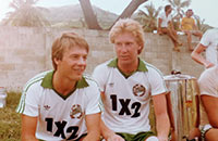 Det blev ramaskri bland supportrarna och de bägge bröt så småningom kontraktet och valde att stanna i Hammarby. Billy Ohlsson gjorde comeback med besked. Han vann den allsvenska skytteligan, Bajens andra i rad, på 19 mål. Till laget anslöt också Johnnie Efraimsson från IFK Motala och målvakten Anders Markström från Flarken. Hammarby darrade, liksom året förut, i inledningen av serien och hade bara tagit tre poäng på de sex första matcherna. På de följande sju matcherna vann laget sex och spelade en oavgjord. Därmed var serien i gång för Hammarby. Säsongen gick på riktigt bra för Hammarby. Dock tappade man för många onödiga poäng för att kunna knipa en medalj. Hemma mot nedflyttade Mjällby och Landskrona blev det till exempel endast en poäng totalt. Förlusten i omspelsmatchen mot Djurgården (1-2) bidrog också, inte minst med tanke på att Hammarby var tämligen överlägset och ledde i paus med 2-0 när domare Efon Ask valde att bryta. Bajen tog hem årets Stockholm Cup (DM). Dessutom vann reserverna den allsvenska reservlagsserien och U-laget Allsvenska reservlagsseriens grupp 2. Bajens landslagsrepresentation blev inte fullt så stor som 1979, men några spelare var i alla fall med. Putte Ramberg spelade hela åtta matcher och delade skytteligan på två mål med Östers Mats Nordgren. Han sköt 1-0 i VM-kvalmatchen mot Israel (1-1) och inledde vändningen med 1-2-målet borta mot Bulgarien (3-2). Billy Ohlsson sköt ett mål i de tre matcher han var med i (2-2 mot Bulgarien) och Ronnie Hellström spelade två matcher. Michael Andersson och Thomas Dennerby representerade U21 med 2 respektive 3 matcher, dessutom spelade Hans Holmqvist (då i Djurgården) två U21-kamper. Jan Wegerman spelade i juniorlandslagets samtliga sju matcher. Under hemmamatchen mot Landskrona skedde något som skulle förändra Hammarbys supporterkultur och ta den ett steg framåt. Då regnade det nämligen flaskor in på planen efter Landskronaspelaren (och senare Djurgårdaren) Mats Aronsson provocerat klacken efter ett mål. Hammarbys Supporterklubb slutade därför att arrangera bussresor till bortamatcherna för fansen. Istället tog en liten grupp under Stefan Magnusson över bussarrangemangen. Ett år senare startade man även supporterklubben Bajen Fans. Hammarbys pojklag födda 1968 ställde till sensation då man vann Sankt Erikscupen trots att man inte ens spelade i Elitgruppen. Lagen tog sig till slutspel genom att komma tvåa i Grupp B. Man avfärdade elitlag efter elitlag i vägen fram till finalen där man besegrade IFK Lidingö efter straffar. Allsvenskan800413 (Fotbollsstadion)Hammarby-Norrköping 1-1 (1-1) Program 0-1 15 Håkan Pettersson, 1-1 43 Sten-Ove Ramberg Domare: Erik Fredriksson/Stig Ljung, Hjo, Arne Nilsson, Falköping Publik: 11 157 Om matchen: Solig premiär på Råsunda. Det mest minnesvärda var Sten-Ove Rambergs stenhårda halvvolley som betydde 1-1 strax före paus. 800424 (Fotbollsstadion) Hammarby-Malmö FF 0-0 Domare: Per-Arne Morin, Båtskärsnäs/Bo Helén, Göran Lundberg, Uppsala Publik: 6 818 Om matchen: Billy Ohlsson brände matchens chans då han sköt över från fem meter då tre Hammarbyspelare kom fria då Malmös offsidefälle misslyckades. 800503 (Idrottsparken) Sundsvall-Hammarby 2-0 (1-0) 1-0 30 Anders Lindahl, 2-0 54 Bo Andersson Domare: Kjell Johansson, Holm Publik: 5 504 Om matchen: Hammarby låg på till en början. Men Sundsvall tog över. Hammarbys måltorka började bli ett problem. 800511 (Fotbollsstadion) Hammarby-Öster 0-1 (0-1) 0-1 9 Peter Svensson (Peter Nilsson) Domare: Bengt Gunbro, Halmstad (Jan-Ingemar Svensson, Ängelholm enl en källa)/Bertil Andersson, Sven-Olov Thunman, Gävle Publik: 7 010 Om matchen: På grund av en av de största arbetsmarknadskonflikternai modern tid var inte alla arenorna igång. Så Hammarby spelade sina hemmamatcher på Råsunda. Mot Öster blev det ett tidigt baklängesmål, efter ett förvarsmisstag. Hammarby tryckte på hårt men man lyckades inte komma tillbaka. 800515 (Kopparvallen) Åtvidaberg-Hammarby 3-3 (0-2) 0-1 9 Peter Gerhardsson (Billy Ohlsson), 0-2 20 Billy Ohlsson, 1-2 46 Leif Johansson, 2-2 49 Glenn Martindahl, 3-2 74 Conny Torstensson (Glenn Martindahl), 3-3 80 Billy Ohlsson Domare: Efon Ask, Malmö/Bengt Jansson, Hallsberg, Åke Svanlund, Örebro Publik: 2 673 Om matchen: Äntligen trillade bollarna in. Två mål av Billy Ohlsson räckte dock inte. Bajen tappade sin tvåmålsledning på tre minuter i början av andra halvlek. En ledning som borde varit de dubbla då laget spelade mycket bra. 800518 (Domnarvsvallen) Brage-Hammarby 1-0 (0-0) 1-0 65 Lars Gyllenvåg (Jan Lindstedt) Utv, Brage: Göran Arnberg (90) Domare: Bo Pettersson, Åmål Publik: 9 476 Om matchen: Hammarby hade svårt med Brages stabila spel vid den här tiden. Den här matchen var en i raden där Bajen kammade noll på Domnarvsvallen. 800526 (Söderstadion) Hammarby-Kalmar 2-0 (2-0) Program 1-0 24 Billy Ohlsson, 2-0 31 Thom Åhlund (Michael Andersson) Domare: Håkan Lundgren, Umeå/Owe Cardestål, Strängnäs, Kemal Makota, Södertälje Publik: 8 120 Om matchen: Ur matchprogrammet 2016 800529 (Landskrona IP) Landskrona-Hammarby 2-4 (1-2) 1-0 27 Stuart Baxter, 1-1 35 Billy Ohlsson, 1-2 38 Mikael Rönnberg straff, 1-3 57 Jonnie Efraimsson, 2-3 68 Sonny Johansson, 2-4 88 Jonnie Efraimsson Domare: Christer Drottz, Alingsås Publik: 2 652 Om matchen: Hammarby vann rättvist. Några spelare var rätt bittra på Landskornas Anders ”Puskas” Ljungberg, tidigare Malmö, som spelade mycket fult. Jonnie Efraimsson gjorde två mål. 800605 (Fotbollsstadion) Hammarby-Djurgården 1-1 (0-1) Biljett 0-1 27 Sven Lindman, 1-1 82 Jonnie Efraimsson (Ulf Eriksson) Domare: Per-Arne Morin, Båtskärsnäs/Rune Larsson, Stockholm, Lennart Netz, Vällingby Publik: 19 069 Om matchen: Hammarby chockades av Sven Lindmans lösa långskott som slank mellan benen på Gunnar Wilhelmsson. Efter ett stort tryck lyckades Johnnie Ef
