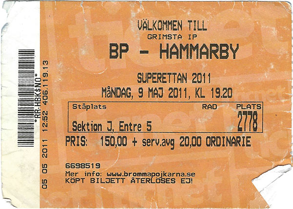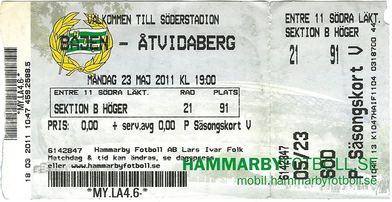 Och ändå såg det ganska ljust ut till en början. Populäre tränaren Roger Franzén tog hand om ett lag som lyckades få hem Björn Runström och Paulinho Guara. Det här året skulle inte bli lika uselt som året förut. Men säsongsinledningen var illavarslande med träningsförlust mot Degerfors med 4-0, och även om träningsmatcherna ju inte betyder något, och Hammarby spelade upp sig, så blev den omedelbara sortin ur Svenska Cupen mot det inte alltför skräckinjagande Bollklubben Vargarna från Norrtälje, en varningsklocka. Hammarby började serien lika darrigt som 2010 och laget lyckades aldrig bli ett topplag. Till slut blev det istället en kamp för att undvika kval, något man lyckades i den sista matchens sista spark då Sebastian Bojassén sköt 1-0 borta mot Ängelholm. Spelet var väl åtminstone stundtals hyfsat. Att själva spelet var bättre än 2010 är inte konstigt då det inte existerade något spel 2010. Men så bra var det inte. De flesta lag som kom till Söderstadion, inklusive Qviding, spelade en enklare och mer effektiv fotboll än Hammarby. Bajen levde mycket, precis som 2010, på enskilda prestationer. Då av Linus Hallenius, detta år främst av Maic Sema (men även en del andra som glimtade till då och då. Denna säsong hade inte den förmildrande omständigheten att laget lirade ut ett gäng allsvenska lag på väg till cupfinalen. Så, mer ska nog inte sägas om Hammarby Fotbolls sämsta säsong sedan i slutet av 1940-talet. En ljusglimt, nej en fullständigt formidabel strålkastarkaskad, var den trogna publiken och den sjungande publiken. Aldrig i modern supporterhistoria har Hammarbys fans haft mindre att glädjas över än denna säsong, aldrig har man visat ett sånt tålamod. Publiksnittet uppgick till 7 953 vilket skulle ge en 8:e-plats i allsvenskan. Tar man bort AIK-derbyt så kom Djurgården upp i 7 223. Dessutom följdes laget av stora bortaföljen, något som inget allsvenskt lag överträffade. Hammarbys landslagsrepresentation var inte mycket att skryta med, åtminstone inte A-landslaget, där endast tidigare Hammarbyspelaren Emil Johansson gjorde en match. (Dessutom representerade José Monteiro Guinea-Bissau) I U21-landslaget spelade Marcus Törnstrand två matcher. I Tomas Turessons U19-lag spelade Robin Tranberg fem matcher. Hammarbys talanglag HTFF gjorde sin sista säsong. I stället skulle föreningen satsa på ett U21-lag. Skälet var bl a förändrade regler för övergångar. Fördelarna med nyordningen som nämndes var ungefär samma sak som nackdelarna i början av 2000-talet då man beslutade att dra igång, och vise versa. Superettan110411 (Södertälje Fotbollsarena)Assyriska-Hammarby 1-0 (1-0) Tifo Tifo 1-0 8 Jones Kusi-Asare (Nahir Besara) Varningar, Assyriska: Mikael Ishak, Mikael Thorstensson, Haris Laitinen Hammarby: Björn Runström Domare: Bojan Pandzic, Hisings Backa/Mikael Hallin, Christian Andersson, Augin Melki, Södertälje Publik: 6 411 110418 (Söderstadion) Hammarby-Landskrona 2-1 (0-1) Lagbild Program Tifo 0-1 9 Fredrik Olsson, 1-1 88 Maic Sema (Max Forsberg), 2-1 90+3 Maic Sema Hörnor: 5-3 Varningar, Hammarby: Robin Wikman, Marcus Törnstrand Landskrona: Marcus Lantz Domare: Jim Petersson, Godegård/Andreas Björkman, Insjön, Patrik Klintberg, Niclas Ivarsson, Stockholm Publik: 12 801 110425 (Markbygg Arena) Ljungskile-Hammarby 4-1 (2-1) 1-0 15 Gabriel Altemark Vanneryr (Johan Patriksson), 1-1 25 Christer Gustafsson (Andreas Dahl), 2-1 26 Aleksandar Kitic, 3-1 51 Michael Thomas (Alexander Mellqvist), 4-1 61 Johan Patriksson (Michael Thomas) Hörnor: 4-6 Varningar, Ljungskile: Aleksandar Kitic, Josemar da Santana Silva, Robin Jonsson Hammarby: Robin Wikman, Marcus Törnstrand Domare: Mattias Nyman, Kungsbacka/Christian Andersson, Magnus Vallerius, Tobias Revelj, Uddevalla Publik: 3 460 110429 (Söderstadion) Hammarby-Brage 1-0 (0-0) Lagbild Biljett Tifo 1-0 53 Paulinho Guará (Andreas Dahl) Hörnor: 7-3 Varningar, Hammarby: Andreas Dahl, Petter Furuseth, George Moussan Brage: Johan Persson Domare: Antti Kanerva, Olofstorp/Mikael Hallin, Patrik Klintberg, Jonas Bäcklund, Solna Publik: 9 825 110509 (Grimsta IP) Brommapojkarna-Hammarby 1-0 (1-0) Biljett 1-0 22 självmål Monday James Hörnor: 7-6 Varningar, BP: Joakim Lindner, Gabirel Petrovic Hammarby: Max Forsberg Domare: Lars Olsson, Umeå/Fredrik Johansson, Hässelby, Magnus Moberg, Bromma, Niclas Ivarsson, Stockholm Publik: 4 102 110515 (Söderstadion) Hammarby-Västerås 3-1 (0-0) Biljett 1-0 58 Paulinho Guará (Andreas Dahl), 2-0 74 Maic Sema (Max Forsberg), 2-1 79 Christopher Alvengrip (Tobias Holmgren), 3-1 90+6 Andreas Dahl straff Hörnor: 14-5 Varning, Västerås: Tobias Holmgren Domare: Martin Olsson/Christian Andersson, Joakim Amri Nilsson, Hisings Backa, Andreas Glanberg, Stockholm Publik: 7 475 110519 (Valhalla) Qviding-Hammarby 2-2 (1-1) 1-0 3 Isa Bagci (Peter Nilsson), 1-1 19 Sebastian Castro Tello (Maic Sema), 2-1 55 Kenan Galijatovic (Isa Bagci), 2-2 84 Andreas Dahl Hörnor: 7-7 Varningar, Qviding: Per Broberg Hammarby: Andreas Dahl Domare: Niklas Abrahamsson, Sollefteå/Anders Jansson, Fredrik Klyver, Fredrik Olsson, Dalsjöfors Publik: 1 127 110523 (Söderstadion) Hammarby-Åtvidaberg 2-0 (1-0) Program Biljett 1-0 44 Maic Sema (Max Forsberg), 2-0 60 Maic Sema (SImon Helg) Hörnor: 5-6 Varningar, Hammarby: Monday James, Sebastian Castro Tello Åtvidaberg: Daniel Hallingström, Jesper Arvidsson Domare: Mattias Nyman, Kungsbacka/Tobias Langkow, Gustav Asmon, Örebro, Mohammed Dabestani, Solna Publik: 7 809 110527 (Söderstadion) Hammarby-Degerfors 1-2 (0-2) Lagbild Program 0-1 15 Christophe Lallet, 0-2 39 Peter Samuelsson, 1-2 59 Sinan Ayranci (Fadi Malke) Hörnor: 10-3 Varningar, Hammarby: Andreas Dahl Degerfors: Macus de Bruin, Andreas Gunnarsson, Brian Cahill Edwards, Jonas Olsson Domare: Antti Kanerva, Olofstorp/Magnus Moberg, Fredrik Johansson, Jonas Schenning, Tungelsta Publik: 7 557 110608 (Norrporten Arena) GIF Sundsvall-Ham