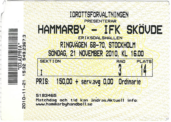 Laget mötte Stockholm Exiles redan i semifinalen. Till slut var det Enköping som drog det längsta strået. Men året var ändå ganska framgångsrikt. Brons i stora SM och silver i 7-manna-SM. Nicklas Ståhle, Hannes Eriksson, Theuri Njuru och Ricky Okpu deltog i landslagets första 7-mannatrupp. I mars var hela nio spelare uttagna till landslagsläger i Täby. Tre Hammarbyspelare blev Stora Grabbar det här året. Det var Ivar Bengtsson, Rikard Johansson och Mattias Thorhard. Elitserien110430 Hammarby-Göteborg 40-7110518 Hammarby-Enköping 23-23 110528 Spartacus-Hammarby 27-8 110611 Stockholm Exiles-Hammarby 41-8 110709 Attila-Hammarby 9-17 110806 Göteborg-Hammarby 17-31 110813 Hammarby-Spartacus 38-18 110820 Hammarby-Stockholm Exiles 7-22 110827 Enköping-Hammarby 42-13 110910 Hammarby-Attilla 24-10 SM110917 Hammarby-Stockholm Exiles 17-31 (semifinal)110924 Stockholm Exiles-Hammarby 19-8 7-manna-SM110521 Stockholm Exiles-Hammarby 24-26 (kval)110521 Hammarby-Uppsala RFC 26-5 110521 Hammarby-Visby RF 24-5 110604 Hammarby-Enköpings RK 7-35 (gruppspel) 110604 Visby Rugby-Hammarby 12-29 110604 Hammarby-Uppsala RFC 40-5 110701 Pingvin RC-Hammarby 5-36 (slutspel) 110701 Stockholm Exiles-Hammarby 22-19 110701 Hammarby-Helsingborg Gripen 26-0 110702 Vänersborg-Hammarby 14-17 (semifinal) 110702 Hammarby-Stockholm Exiles 7-22 (final) Träningsmatcher110402 Södertälje RK-Hammarby 5-55110416 Attila RG-Hammarby 15-50 Regionsserie Mälardalen110501 Enköping/Uppsala-Hammarby Bees 7-60110515 Hammarby Bees-Attila B 43-17 110522 Hammarby Bees-Exiles Barbarians 0-36 110612 Hammarby Bees-Enköping/Uppsala 62-39 110709 Attila B-Hammarby Bees 15-0 110814 Exiles Barbarians-Hammarby Bees 49-14 110828 Hammarby Bees-Attila B 45-25 Stockholm 10s, 110730-31Seniorlaget:Hammarby-Karlstad RK 71-0 Hammarby-Welvyn Rangers 15-0 Hammarby-Mighty Twos 49-0 Hammarby-Old Habs 5-47 (kvartsfinal) Veteranlaget: Hammarby Old Boys-Uppsala 31-17 Hammarby Old Boys-International Wanderland 15-0 Hammarby Old Boys-Sandviken 19-7 Hammarby Old Boys-BTC Old Boys RFC 5-27 (final) Spelartruppen, sjumanna-SM1.Mattias Björkebäck2.Erik Wickström 3.Ricky Okpu 4.Charles Schuttinger 5.Alexander Ahl 6.Kyle Dutton 7.Joel Flitton 8.Linus Skoglund 9.Lucas Jackalin 10.Sebastian Pihlainen Ledare: Chris Durrant SkidorHammarbys skidåkare ställde upp i lite olika tävlingar under säsongen. Bästa DM-resultat var Jerker Åbergs bronsplats i långa-DM för H40. I Söderskidan kom Hammarby totalt fyra efter de fem tävlingarna mellan Stockholms skidklubbar. Höjdpunkten var kanske Vasaloppet där 53 Hammarbyåkare kom i mål. Klara Torlén kom 279:a i damklassen med tiden 7.25.59, och Jerker Åberg blev 481:a bland herrarna på tiden 4.50.24. DMH40, 50 km, masstart klassisk:3. Jerker Åberg, 2.21.29,5 +8.27,4 H55, 50 km, masstart klassisk: 6. Roland Falk, 5.54.43,4 +21.28,6 Söderskidan1. IK Jordbänningarna, 1003 poäng2. Sundbybergs IK, 447 3. Nacka Värmdö SK, 328 4. Hammarby, 166 5. Huddinge SK, 156 6. Telia IF, 148 7. Ericsson IK, 80 8. SK Linden, 62 Speedski, SM, Svenska Cupen 1SDH, herrar12. Björn Jonsson, Hammarby, 127.33 16. Arne Lindgren, Hammarby, DNS Speedski, Svenska Cupen 2110312, SDH9. Arne Lindgren, 114.10 12. Björn Jonsson, 113.50 Speedski, Svenska Cupen 3110313, SDH10. Arne Lindgren, 111.88 Speedski, Svenska Cupen 4110401, SDH17. Björn Jonsson, DNS Speedway/Isracing