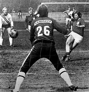 Klubbmästarinna 1974 blev Margareta Sehlstedt med 1293 poäng. BoxningVid mellansvenska mästerskapen kom Robert Andersson till final, där han föll mot Bengt Wiklund. Hammarby Boxning hade ett minnesvärt besök på träningslokalen då gamle världsmästaren Floyd Patterson kom och inspekterade pugilisterna. SMWelterviktBo Ljung, Kristianstad-Ulf Östlund, Hammarby 5-0Lätt tungviktNils Erik Rosén, Kalmar-Robert Andersson, Hammarby 5-0BrottningHammarby vann två DM-tecken i början av säsongen. Tommy Söderlind vann pojkklassen för 28 kg med en rad fallsegrar, och Ingvar Karlsson vann 90 kg-klassen. Vid DM i grekisk-romersk blev det framgångsrikt för Hammarby. I 52-kilosklassen vann Peter Lindqvist. Till final gick såväl 62-kilosbrottaren Benny Kumlin som Sören Eriksson i 82-kilosklassen. Och på en tredjeplats kom 68-kiloskillen Krister Forsman. Hammarby blev därmed bästa klubb i stan, utan en skadad Ingvar Karlsson. Detta år fyllde säsongen 45 och det var cirka 35 brottare som tränade tre kvällar i veckan. DM28 kg, fristil, pojkar: 1. Tommy Söderlind 2. Jari Uskali52 kg, fristil, juniorer: 1. Peter Lindqvist 90 kg, fristil, seniorer: 1. Ingvar Karlsson 30 kg, grekisk-romersk, pojkar: 1. Tommy Söderlind, 3. Jari Uskali 52 kg, grekisk-romersk, seniorer: 1. Peter Lindqvist 62 kg, grekisk-romersk, seniorer: 2. Benny Kumlin 68 kg, grekisk-romersk, seniorer: 3. Krister Forsman 82 kg, grekisk-romersk, seniorer: 2. Sören Eriksson CykelGamla paradgrenen inom Hammarby, cykeln, började komma igång lite igen. Man vann till exempel DM i lagtempo 5 mil, trots att en i laget, Johnny Hägg, fick punktering. De övriga, Bengt Orvnäs och Kaj Strandberg grejade biffen. Även bland juniorerna blev det vissa framgångar. Torbjörn Troell vann Solleröloppet. Och i B-klassen vann Richard Mulder Djursholmsloppet. I pojkar A Vann Henry Mulder Spårvägens tävling i Bredäng. Henry Mulder blev Svealandsmästare i ungdomsklassen, och Yvonne Svensson blev detsamma i damjuniorklassen. Sammantaget hade föreningen fem klass A-cyklister, samtliga fostrade i klubben. DMLagtempo, 50 km1. Hammarby, 1.11.26,7 (Johnny Hägg, Kaj Strandberg, Bengt Orvnäs)2. Falken, 1.12.08,3 3. Spårvägen, 1.12.28,4 Lagtempo, 30 km, junior1. Falken, 42.02,12. Fredrikshof, 42.33,5 3. Hammarby, 43.40,1 Lagtempo, 20 km, ungdom1. Hässelby, 29.40,02. Hammarby, 30.14,5 3. Fredrikshof, 30.28,7 Tempo, pojkar A1. Leif Nyström, Falken, 31.38,62. Tommy Andersson, Falken, 32.23,4 3. Thomas Lundqvist, Hammarby, 32.36,2 Tempo, pojkar A, lag1. Falken, 1.36.29,42. Spårvägen, 1.40.54,0 3. Hammarby, 1.41.15,4 Tempo, pojkar B1. Ulf Bäckman, Falken, 17.23,32. Thomas Gustavsson, Hässelby, 17.26,0 3. Håkan Nyström, Hammarby, 17.51,4 Fotboll, herrar