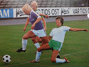 Där blev dock Jakobsberg för svåra. Bättre gick det i träningsturneringen Axemacupen som man vann för andra året i följd. Ann Jansson var Hammarbys representant i A-landslaget och hon sköt det avgörande 2-1-målet mot Schweiz i Göteborg. Division 1 Svealand770424Västerås-Hammarby 1-2 (1-1) Västerås: Lollo Aundreini Hammarby: Ann Jansson, Britt-Mari Karlsson 770501 (Hammarby IP) Hammarby-Ludvika 4-0 (2-0) Ann Jansson 3, Susanne Haglund 770506 (Hammarby IP) Hammarby-Väster 1-0 (0-0) 1-0 Ann Jansson 770512 Södertälje-Hammarby 3-1 (0-0) Södertälje: Ethel Sjölander, Marianne Johansson, Kristina Eriksson Hammarby: Ann Jansson 770519 (Hammarby IP) Hammarby-Närkes-Kil 4-0 (0-0) Ann Jansson, Yvonne Kammeryd, Monika Andersson, självmål 770522 Rävåsen-Hammarby 0-3 (0-2) Ann Jansson 3 770530 (Hammarby IP) Hammarby-Gideonsberg 0-2 (0-1) 0-1 44 Lotta Jonsson, 0-2 60 Liza Eriksson 770602 Jakobsberg-Hammarby 5-1 (2-0) 1-0 1 Katrin Sawerstam, 2-0 Maria Sundberg, 3-0 Birgitta Söderström, 4-0 Katrin Sawerstam, 5-0 Birgitta Söderström, 5-1 83 Britt-Marie Karlsson Publik: 900 770609 (Hammarby IP) Hammarby-Bälinge 4-1 (3-0) Hammarby: Ann Jansson 3, Jeanette Bergh Bälinge: Ann-Marie Dahrén 770612 Hallsberg-Hammarby 1-0 (0-0) 1-0 Elisabet Grane 770619 (Hammarby IP) Hammarby-Rättvik 7-0 (2-0) Ann Jansson 3, Maria Wiman, Britt-Mari Karlsson, Anneli Jansson, Susanne Haglund 770626 Rättvik-Hammarby 0-3 (0-2) Britt-Marie Karlsson, Ann Jansson, Anneli Jansson 770807 (Hammarby IP) Hammarby-Hallsberg 5-1 (3-0) Hammarby: Yvonne Kammeryd 3, Annelie Jansson, Britt-Marie Karlsson Hallsberg: Margareta Mattsson 770811 Bälinge-Hammarby 1-3 (1-0) Bälinge: Anne-Marie Dahrén Hammarby: Yvonne Kammeryd, Annelie Jansson, Britt-Marie Karlsson 770817 (Hammarby IP) Hammarby-Jakobsberg 1-1 (0-1) 0-1 Lotta Sjögren, 1-1 Ann Jansson 770904 Gideonsberg-Hammarby 4-0 (3-0) Karin Lagerström, Kersti Bengtsson, Marie Johansson, Gunilla Claesson 770911 (Hammarby IP) Hammarby-Rävåsen 1-0 (0-0) Ann Jansson 770918 Närkes-Kil-Hammarby 770925 Hammarby-Södertälje 770928 Väster-Hammarby 0-2 (0-2) Susanne Haglund, Britt-Marie Karlsson 771005 Hammarby-Södertälje 1-2 (1-1) Hammarby: Ann Jansson Södertälje: Ether Sjölander, June Åkervall 771009 Ludvika-Hammarby 0-6 (0-3) Ann Jansson 2, Yvonne Kammeryd 2, Susanne Haglund 2 771016 Närkes/Kil-Hammarby 2-3 (1-3) Närkes/Kil: Agneta Ullström, Barbro Klingborg Hammarby: Jeanette Bergh 2, Susanne Haglund 771023 Hammarby-Västerås 3-0 (1-0) Ann Jansson 2, Susanne Haglund SM-slutspel770731 (1 omg, Sudervallen)Hemse BK-Hammarby 1-3 (0-2) 0-1 8 Inga-Lill Arvling (Britt-Marie Karlsson), 0-2 13 Britt-Marie Karlsson, straff, 1-2 63 Kristina Nicklasson, 1-3 64 Ann Jansson Domare: Lasse Berg Publik: 100 (2 omg) Hammarby-IFK Motala 3-0 770828 (kvartsfinal, Olympiafältet) Stattena IF-Hammarby 0-1 eft förl (0-0) 0-1 116 Jeanette Bergh (Susanne Haglund) Om matchen: Stattena hade något fler chanser men Hammarby var stabilt bakåt. 770910 (semifinal, Söderstadion) Hammarby-Jitex BK 1-0 eft förl (0-0) 1-0 115 sjävmål (Annette Börjesson) Publik: 622 Om matchen: Gästernas bästa spelare hade oturen att avgöra genom ett självmål under närkamp med Ann Jansson. Hammarby kämpade sig till segern och Inga-Lill Arvling var nära att avgöra under ordinarie matchtid. 770918 (final, Bolindervallen) Jakobsberg-Hammarby 1-0 (0-0) 1-0 57 Catrine Saverstam Publik: 2 850 (rekord i klubbfotboll för damer) Om matchen: Hammarby gjorde en blek insats. Ann Jansson var alltför ensam framåt hos Bajen. 770924 (final 2, Söderstadion) Hammarby-Jakobsberg 2-2 (1-0) 1-0 17 Ann Jansson (Yvonne Kammeryd), 1-1 47 Gunilla Ekeling (Cathrine Sawerstam), 2-1 48 Britt-Marie Karlsson (hörna direkt i mål), 2-2 Birgitta Söderström Domare: Lennart Netz Publik: 2 295 Om matchen: En jämn match som slutade rättvist oavgjort vilket betydde guld till Jakobsberg. DM770418Lidingö Fotboll-Hammarby 0-11 770524 (kvartsfinal) Rönninge SK-Hammarby 0-3 (0-2) Ann Jansson 2, Yvonne Kammeryd Hammarby-IK Göta 3-0 (semifinal, kval till SM) 771022 (final) Jakobsbergs GoIF-Hammarby 2-1 (1-1) Jakobsberg: Birgitta Söderström, Marie Sundberg Hammarby: Britt-Marie Karlsson Inomhusturnering, Mariehamn, Åland 770116Finströmskamraterna-Hammarby 0-1Hammarby-Pyrkivä 4-2 Hammarby-Hammarland 4-0 Hammarby-Djurgården 2-0 (Hammarby vinnare) Axemacupen770320 Gubbängen/Tallen-Hammarby 1-7Hammarby-Rågsved 5-0 (final) TräningsmatcherHammarby-Sandåkern 3-0Hammarby-Gideonsberg 0-3 770723 Roslagsbro-Hammarby 0-6 770724 Riala-Hammarby 1-5 (1-2) SpelartruppenMålvakter:1. Anneli Hellberg 26. Gun Hellestig (Engfors), 22 år Försvarare: 3. Ingalill Arvling, 21 år 5. Jeanette Bergh, 16 år Sanna Granbeck, 20 år 22. Susanne Haglund, 19 år 2. Barbro Jämtmark, 41 år Riita Kaikonen, 20 år 6. Kristina ”Kicki” Westin, 28 år Mittfältare: 8. Yvonne Kammeryd, 22 år 7. Gunilla Karlsson, 33 år 9. Agneta Norman, 20 år 15. Maria Wiman, 22 år Anfallare: Monica Andersson 10. Ann Jansson, 19 år 11. Annelie Jansson, 16 år Birgitta Johansson, 21 år 14. Britt-Marie Karlsson, 24 år Isa Löfstedt, 19 år Annika Schöld Övriga: Irene Andersson Åsa Andersson Gunnel Borg Margareta Bristrand Gun Granlund Anette Gustavsson Ann Hamreus Annmarie Jansson Lena Jansson 16. Ingrid Lundquist Ann Möller Marie Nilsen Helena Schöldsten Karin Simonsson Ann Ström Lena Söderström Tränare: Bert Nilsson Lagledare: Uno Engfors Materialförvaltare: Lars Isberg ÖvrigtJunior-DMHässelby-Hammarby 3-0 (kvartsfinal)Sankt ErikscupenFlickor C: Tyresö FF-Hammarby 5-0 (kvalomgång)Friidrott