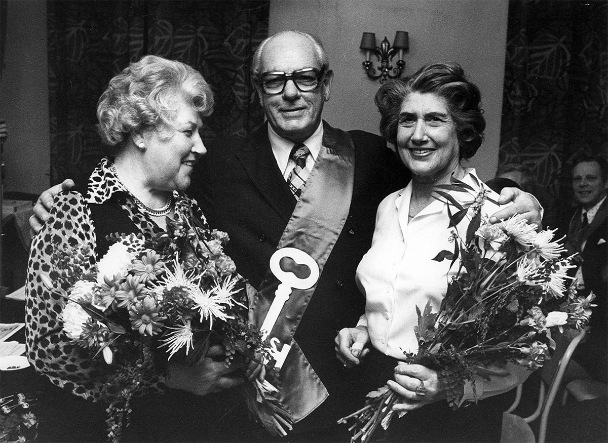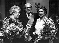 Rodden fyllde 90. Här är ordföranden Stig Darnald med veteranen Gunnar ”Buster” Andersson. Bild i Hammarbyiten 62/1979. |