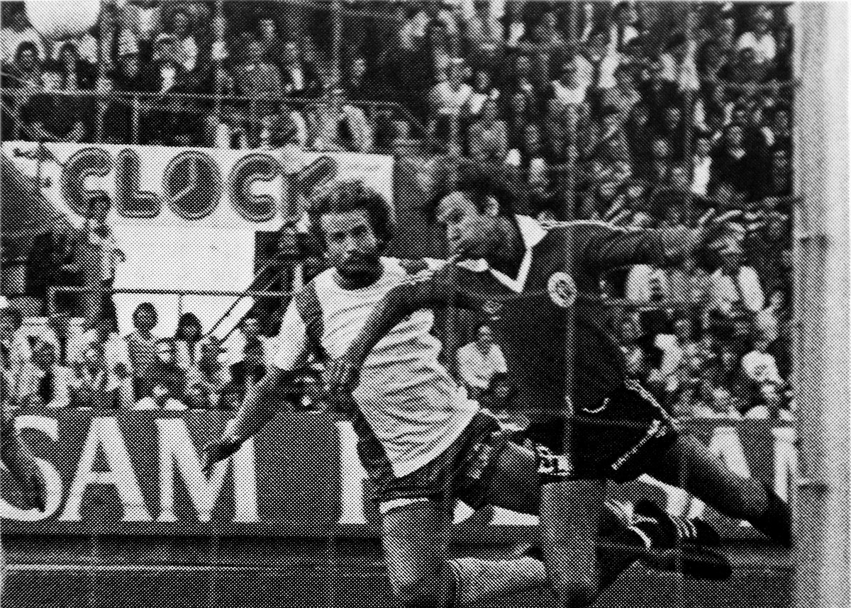 13 september: Ulf Eriksson jagas av Göran Göransson. Ur Hammarbys arkiv. Foto: ROLLE RYGIN. |