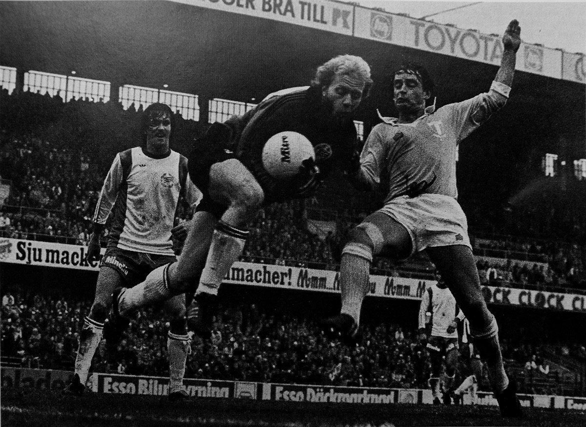 14 juni: Ulf Eriksson gör 4-1 bakom Lars Pettersson. Ur Hammarbys arkiv. Foto: ROLLE RYGIN. |