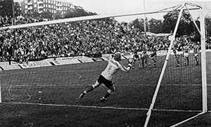 12 augusti: Sten-Ove ”Putte” Ramberg har gjort mål. Ur Hammarbys arkiv. Foto: ROLLE RYGIN. |
