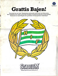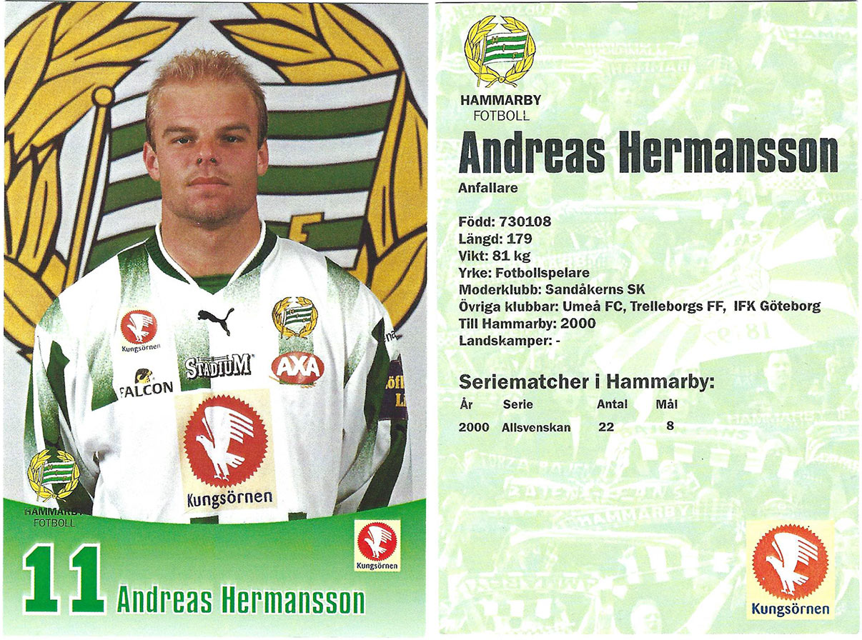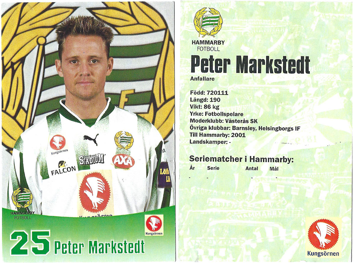 Spelarna som gjorde det var (och spelade minst en match) Lars Eriksson, Erland Hellström, Mikael Hellström, Johan Andersson, Suleyman Sleyman, Jonas Stark, Roger Sandberg, Peter Holm, Dragan Vasiljevic, Patrik Gerrbrand, Andreas Bild, Kennedy Bakircioglü, Mikael Andersson, Christer Fursth, Trym Bergman, Jonas Andersson, Tony Löfholm, Patrik Manzila, Andreas Hermansson, Peter Markstedt och Ermin Siljak. Men det var knappast en lugn och harmonisk klubb som spelade till sig den nyinstiftade Lennart Johansson-bucklan. Redan i november blev det ett ramaskri efter att Hammarby annonserat om kraftigt höjda priser. Att ständigt krisande Bajen behövde stålar för att kunna satsa var nog de allra flesta klara över. Men att supportrarna plötsligt benämndes ”kunder” var nog det som retade upp folk allra mest. Här hade passionerade människor som näranog levde för klubben reducerats till söndagsshoppande zombies i en köplada utanför Tidaholm. I vilket fall röstades en ny ordförande fram i februari. Göran Paulsson fick lämna plats för Rikard Tallen. Om det var en ful supporterkupp eller en nödvändig förändring beror på vem man frågar. Snöpligt för Paulsson var i alla fall att han kände till att Hammarby redan var ekonomiskt räddat i och med att Anschutz Entertainment Group, AEG, var på väg in som delägare. Något han inte fick yppa. Hammarby gjorde bara två värvningar inför säsongen. Dels Tony Löfholm från Enköping, dels den spelare som skulle bli den avgörand pusselbiten, åtminstone hoppades Cratz och Dennerby det. Det var Helsingborgs Peter Markstedt som för tillfället utlånad till Västerås. Hammarbys väg till guldet var inte spikrak, även om man hängde med i tabellen från start. Däremot var spelet inte alltid bländande på våren. Man gick vidare i cupen på straffar mot Vallentuna BK och åkte ur hemma mot Örgryte en kylig aprildag, efter en match som torde vara den sämsta Bajenmatchen på den här sidan istiden. Trots att det gick hyfsat under våren mullrade det till igen i Hammarby under sommaren. Efter tre raka sommarsegrar meddelades det att tränaren Sören Cratz inte skulle få förnyat förtroende efter säsongen. Skälet var att man ville att Hammarby på längre sikt skulle spela en mera passningsorienterad ”rolig” fotboll. Det är omöjligt att säga om idén om rolig fotboll var bra eller inte. Många hävdar att det är roligt när man vinner, och att det faktiskt var kul att Bajen låg i toppen och dessutom vann SM-guld till slut. Det fanns en motion vid årsmötet, som drogs tillbaks i sista stund, som gick ut på att Hammarby borde ha en linje i sitt spel. Den kan ha varit inspirationen till styrelsens senare beslut att låta en kommitté utreda frågan om spelsätt. Möjligtvis tog man guldet just för att Cratz blev utbytt. Laget stärktes kanske när man kände att de var dem mot världen, eller åtminstone mot Hammarbys ledning. Å andra sidan: vem kan klaga på Hammarbys spel de följande åren under Anders Linderoth? Och skulle Sören Cratz kunnat upprepa spelet från 2001? I vilket fall, under sommaren förstärktes laget med unge Pablo Piñones-Arce från Venezia och den slovenska landslagsmannen Ermin Siljak. Laget puttrade på och hade med lite tur möjlighet att säkra guldet i höstderbyt mot AIK. Solnaiterna vann dock med 5-2 efter två mål på övertid och hoppet ställdes till ett avgörande på Söderstadion den 21 oktober mot Örgryte. 10 766 fick se Jeffrey Aubynn göra 1-0 till gästerna redan efter 10 minuter. Många kände nog att festen kunde gå om intet just då. Men efter en dryg halvtimme kvitterade Andreas Hermansson, och i den 51:e minuten kastade sig Jonas Stark fram och nickade in 2-1. När så Kennedy satte 3-1 var undret nära. På Hammarbyskt manér kunde man dock inte känna sig säker eftersom Christian Hembergs satte 2-3 med astronomiska 13 minuter kvar att spela. Efter säsongen belönades Lars Eriksson med en glasboll på Fotbollsgalan på Cirkus då han utsågs till Årets målvakt. Johan Anderssons frisparkskanon hemma mot Trelleborg röstades fram som årets mål. Det blev nya bud om Söderstadions framtid i september. Då sköts ombyggnaden fram ett år på grund av Uefas nya arenamanual som man väntade in... Bland de svenska utlandsproffsen fanns en del med Hammarbyanknytning, både såna som spelat och senare skulle spela i Hammarby. I Danmark fanns målvakten Per Fahlström i Lyngby FC och Klebér Saarenpää i AaB. I England spelade Andreas Dahl, Coventry City FC. I finländska HJK Helsingfors spelade Joakim Jensen. Nadir Benchenaa tillhörde Stade Rennais FC:s ungdomslag. I Italien spelade Björn Runström, Bologna 1909 FC och Pablo Piñones-Arce, Venezia. I Norge, som är en vanlig reträttort för svenska proffsdrömmar, spelade Hans Berggren, Haugesund FK (division 1). Fredrik Söderström, som skulle komma till Bajen många år senare, fortsatte sin karriär i portugisiska SC Vitória, Guimarães. Bland de oändligt många som tillhört A-landslaget under året fanns några få med Hammarbykoppling. Klebér Saarenpää (då i Aalborg) spelade 9 matcher, Kennedy Bakircioglü, 1 match, Fredrik Söderström (Vitória), 2 matcher och Jeffrey Aubynn (då Örgryte), 1 match. I U21-landslaget spelade Peter Holm (1 match) och Kennedy (5 matcher) I de yngre landslagen hade följande spelare Bajenkoppling: P18: Björn Runström (Bologna 1909 FC). P17: Nadir Benchenaa (även Stade Rennais FC), Fredrik Stoor, Andreas Dahl (IFK Hässleholm/Coventry City FC). P16: Petter Andersson (Sunnanå SK). Allsvenskan010407 (Söderstadion)Hammarby-Sundsvall 1-0 (1-0) Program Ur matchprogrammet 2015 Tifo Tifo 1-0 22 Andreas Bild (Andreas Hermansson) Varningar, Hammarby: Peter Markstedt Sundsvall: Fredric Lundqvist, Marko Tuomela, Cin Dotson Utvisning, Sundsvall: Joel Cedergren (75) Domare: Martin Ingvarsson, Hässleholm/Henrik Andrén, Karlstad, Edvard Pruner, Värnamo, Jonas Eriksson, Stock