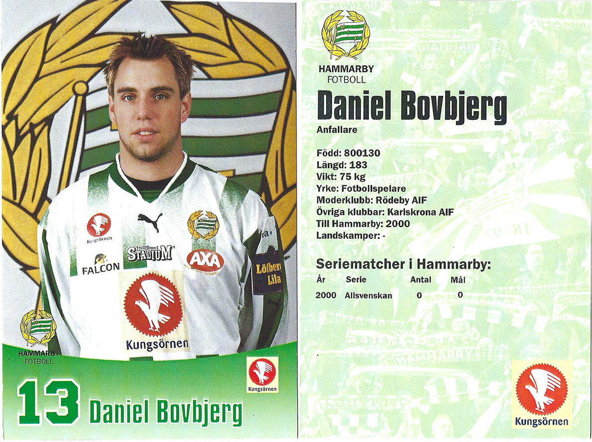 Två blev Ulla Price på 1452 poäng, och trea Lena Jellby på 1438 poäng. I DM vann Rosie Jidbacken individuellt, 3-mannalaget med Annica Pettersson, Ann-Ki Larsson Carlsson och Ewa Markus kom på tredje plats. I DM för oldgirls kom Ewa-Lena Altenfors 3:a medan Birgitta Heron tog en sjätteplats. Elitserien Norra000902 Hammarby-Eva Stockholm 10-10000909 Eva Norrköping-Hammarby 13-6 000910 Dimico-Hammarby 3-17 000916 Hammarby-Cobbers 14-6 000917 Biet-Finesse-Hammarby 11-9 001007 Avesta-Hammarby 10-10 001008 Cobbers-Hammarby 12-8 001014 Hammarby-Dimico 16-4 001014 Hammarby-Eva Norrköping 9-11 001021 Hammarby-Sundbyberg 7-13 001111 Eva Stockholm-Hammarby 9-11 001112 Sundbyberg-Hammarby 16-4 001118 Hammarby-Biet-Finesse 9-10 001125 Hammarby-Avesta 12-8 Division 1 S Svealand Vår010113 Hammarby-Zorita 15-5010120 Zorita-Hammarby 9-11 010120 Parant-Hammarby 9-11 010127 Hammarby-Stånga 5-15 010204 Stånga-Hammarby 12-8 010304 Hammarby-Dimico 8-12 010304 Hammarby-Ramita 16-4 010324 Dimico-Hammarby 13-7 010324 Ramita-Hammarby 7-13 010331 Hammarby-Parant 9-11 010401 Hammarby-Djurgården 15-5 010407 Djurgården-Hammarby 10-10 010407 Avance-Hammarby 9-11 010421 Hammarby-Avance 10-10 SpelartruppCarina AhlstrandEwalena Altenfors Helena Bergman Inge-Marie Carlberg-Johansson Vavva Gimhag Anne Hedbom Anita Hemdal Birgitta Heron Lenah Jellby Rosie Jidbacken Ewa Karlsson Ann-Ki Larsson Carlsson Anne-Christin Lindgren Ulla-Bella Lundström Ewa Markus Anette Persson Annica Pettersson Ulla Price Barbro Sjölander Inger Stambert Annelie Svingdahl Christina Svärd Lotta Törnblom Grethe Wiklund Annette Wärme BoxningBoxningen höll igång som vanligt på Kocksgatan. Man hade två seniorer att räkna med: Fahrettin Yetim, 29-årig fjäderviktare som kom trea på SM, och Kalle Larsson-Jones, 21-årig welterviktare. Dessutom nämdes welterviktaren Niklas Adamsson, 20, och mellanviktaren Markus Wixström, 15. Junior-SM67 kgFahrettin Yetim, Hammarby-Cliff Soukka, Akilles RSC3 (Soukka vinnare)Fotboll, herrar