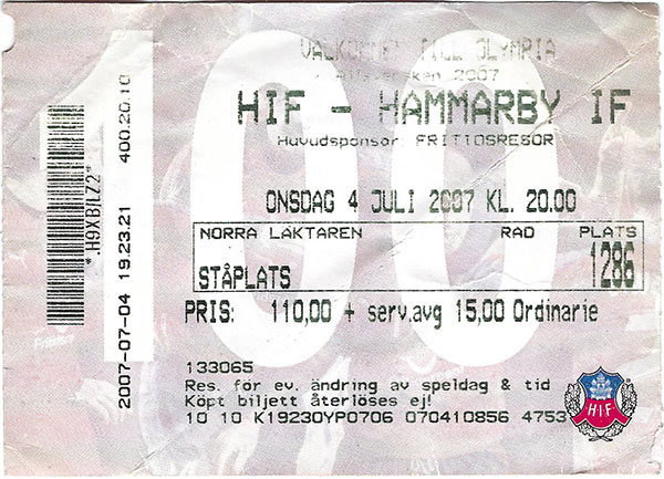 Han hade dock inte en lika stark trupp att arbeta med då spelare som Max von Schlebrügge, Ante Covic, Pablo Piñones-Arce, Fredrik Stoor och Petter Furuset Olsen, och tidigt under säsongen Jeffrey Aubynn, försvann. De som kom istället var inte dåliga, men de som skulle göra bäst resultat gjorde det några år framåt i tiden. Det gäller Emil Johansson från Degerfors, Charlie Davies från USA och Simon Helg från IFK Eskilstuna. Ett undantag dock: målvakten, lånet Richard Kingson, gjorde succé. Ghanas landslagsmålvakt stannade dock bara halva säsongen. Hammarby hade inte råd att förlänga kontraktet. Det medförde ett stort målvaktsstrul där man använde sig av en hel radda målvakter. Hammarby hade toppkänning i de 11 omgångar som Kingson spelade i laget. Därefter gick det sämre och i slutet av säsongen rasade laget ihop med åtta förluster på 11 matcher. I det svenska A-landslaget var det bara Jeffrey Aubynn som kom från Hammarby. Andra spelare med Bajenkoppling var Rami Shaaban (Fredrikstad) och Max von Schlebrügge (Anderlecht). I U21-laget spelade Sebastian Castro-Tello, Isak Dahlin och Emil Johansson. I P19-laget spelade Tobias Holmqvist (då i GAIS) och i P18 spelade George Moussan och Linus Hallenius (då i GIF Sundsvall). Simon Helg var Hammarbys representant i P17-landslaget där även Marcus Törnstrand (då BP) deltog. Svenska utlandsproffs med Hammarbybakgrund/-framtid: Belgien: Max von Schlebrügge, RSC Anderlecht. Danmark: Pablo Piñones-Arce och Klebér Saarenpää, Vejle BK. England: Björn Runström, Fulham FC och Luton Town FC, Alexander Östlund, Southampton FC. Holland: Kennedy Bakircioglü, FC Twente. Norge: Patrik Gerrbrand och Rami Shaaban, Fredrikstad FK, Fredrik Stoor, Rosenborg BK, Jeffrey Aubynn, Ålesund FK. Spanien: Fredrik Söderström, Córdoba CF och UD Lanzarote. Allsvenskan070410 (Gamla Ullevi)GAIS-Hammarby 1-1 (1-1) Biljett 0-1 10 Sebastian Castro-Tello, 1-1 39 Johann Gudmundsson Hörnor: 8-3 Varningar, GAIS: Andreas Tobiasson, Prince Ikpe Ekong, Anatoli Pnomarev, Migen Memelli Hammarby: Suleyman Sleyman, Gunnar Thor Gunnarsson Domare: Jonas Eriksson, Sigtuna/Peter Martinsson, Bunkeflostrand, Peter Stefansson, Jönköping, Mikael Eriksson, Huskvarna Publik: 7 747 070414 (Söderstadion) Hammarby-Trelleborg 3-0 (1-0) Lagbild Biljett Annons 1-0 9 Paulinho Guará (David Johansson), 2-0 83 Erkan Zengin, 3-0 90 Sebastián Eguren (Louay Chanko) Hörnor: 6-5 Varningar, Hammarby: Mikkel Jensen Trelleborg: Yousef Fahkro, Linus Malmqvist, Michael Mensah Domare: Martin Hansson, Holmsjö/Stefan Hallberg, Göteborg, Mirce Popvski, Göteborg, Mikael Gundmundsson, Johanneshov Publik: 13 227 070424 (Fotbollsstadion) AIK-Hammarby 1-0 (1-0) Program 1-0 12 Daniel Mendes (Wilton Figueiredo) Hörnor: 4-6 Varningar, Hammarby: Erkan Zengin, Sebastián Eguren, Petter Andersson Domare: Martin Ingvarsson, Hässleholm/Fredrik Nilsson, Svalöv, Joakim Flink, Karlskrona, Patrik Malmberg, Uppsala Publik: 30 318 070429 (Söderstadion) Hammarby-Brommapojkarna 4-0 (2-0) Program Lagbild Tifo Annons 1-0 15 Petter Andersson (Louay Chanko), 2-0 21 Petter Andersson, 3-0 76 Christian Traoré (Erkan Zengin), 4-0 81 Paulinho Guará Hörnor: 3-6 Varning, BP: Pär Asp Domare: Jonas Eriksson, Sigtuna/Stefan Wittberg, Märsta, Hans Grönlund, Njurunda, Mikael Gudmundsson, Johanneshov Publik: 13 114 070508 (Malmö Stadion) Malmö-Hammarby 1-1 (1-1) 1-0 9 Daniel Andersson, 1-1 32 Sebastian Eguren Hörnor: 8-3 Varningar, Malmö: Joakim Nilsson Hammarby: José Monteiro, Erkan Zengin, Petter Andersson Domare: Åke Andreasson, Stenungsund Publik: 15 607 070513 (Söderstadion) Hammarby-Örebro 1-0 (0-0) Lagbild Biljett Annons 1-0 90 Heidar Geir Juliusson (Petter Andersson) Hörnor: 5-8 Varningar, Hammarby: Emil Johansson, Heidar Geir Juliusson Örebro: Sebastian Henriksson Domare: Daniel Stålhammar, Landskrona/Stefan Hallberg, Göteborg, Henrik Bogdan, Göteborg, Jonny Ahlvin, Tyresö Publik: 11 328 070520 (Strömvallen) Gefle-Hammarby 1-0 (0-0) 1-0 68 Johan Oremo Hörnor: 10-2 Varningar, Gefle: Mathias Woxlin, Johannes Ericsson Domare: Peter Fröjdfeldt, Eskilstuna Publik: 6 890 070526 (Söderstadion) Hammarby-Elfsborg 0-1 (0-0) Lagbild Biljett Annons 0-1 79 Daniel Alexandersson (Samuel Holmén) Hörnor: 4-7 Varningar, Hammarby: José Monteiro, Paulinho Guará, Heidar Geir Juliusson Domare: Martin Hansson, Holmsjö/Joakim Flink, Karlskrona, Peter Martinsson, Bunkeflostrand, Christian Svärdling, Järfälla Publik: 12 832 070611 (Örjansvall) Halmstad-Hammarby 2-2 (0-0) 1-0 52 Mikael Rosén, 1-1 55 Louay Chanko, 2-1 70 Per Johansson, 2-2 94 Paulinho Guará (Sebastian Eguren) Hörnor: 2-5 Varningar, Hammarby: Richard Kingson, José Monteiro, Louay Chanko Domare: Daniel Stålhammar, Landskrona/Fredrik Nilsson, Svalöv, Joakim Flink, Karlskrona, Daniel Böcker, Munka-Ljungby Publik: 8 208 070619 (Fotbollsstadion) Hammarby-Djurgården 2-0 (1-0) Lagbild Program Tifo Annons 1-0 31 Sebastian Eguren (Haris Laitinen), 2-0 60 Sebastian Eguren (Paulinho Guara) Hörnor: 6-7 Varningar, Hammarby: Sebastián Eguren, Christian Traoré, Heidar Geir Juliusson Djurgården: Jan Tauer, Lance Davids, Patrick Amoah Domare: Peter Fröjdfeldt, Eskilstuna/Peter Ekström, Enköping, Peter Vesterholm, Årsta, Johan Hamlin, Bro Publik: 23 545 070627 (Söderstadion) Hammarby-IFK Göteborg 3-1 (3-0) Program Biljett Annons 1-0 8 Sebastian Eguren (Haris Laitinen), 2-0 22 Louay Chanko, 3-0 44 Erkan Zengin (Haris Laitinen), 3-1 50 Magnus Johansson Hörnor: 1-7 Varningar, Hammarby: Richard Kingson, Nkosinathi Nhleko, Emil Johansson Göteborg: Niclas Alexandersson, Stefan Selakovic, Magnus Johansson Domare: Martin Ingvarsson, Hässleholm/Fredrik Nilsson, Svalöv, Hans Grönlund, Sundsvall, Christian Svärdling, Järfälla Publik: 12 512 070704 (Olympia) Helsingborg-Hammarby 4-2 (1-0) 1-0 38 Samir Beloufa, 2-0 50 Razak Omotoyossi, 3-0 56 Henrik Larsson, 3-1 62 Sebastian Castro-Tello (Haris Laitinen), 3-2 74 Paulinh