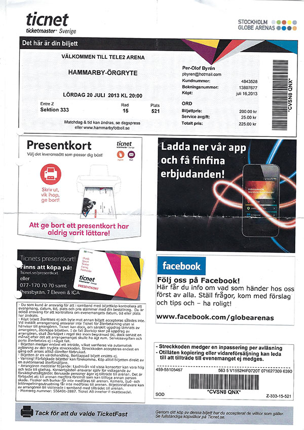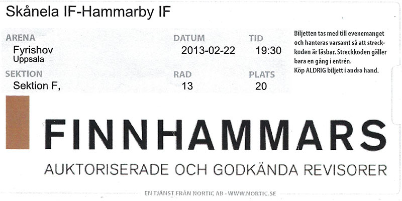 Hammarby tappade dock bara ytterligare en poäng medan Värmdö ”slarvade bort” fler poäng mot lagen längre ned i serien. Trots en neslig förlust i kvalet mot gotländska Endre, fick klubben en gratischans till division 1-spel då Umeå City dragit sig ur. Hammarby tackade ja till platsen. Division 2 Stockholm120915 Hammarby-Järfälla 4-1 (1-1, 1-0, 2-0) P: 73120930 Åkersberga-Hammarby 1-6 (1-0, 0-1, 0-5) P: 89 121013 Hammarby-Älvsjö 8-2 (3-1, 1-1, 4-0) P: 57 121020 Värmdö-Hammarby 5-3 (1-0, 2-0, 2-3) P: 117 121103 Hammarby-Kungsängen 9-4 (1-0, 2-2, 6-2) P: 107 121111 Täby-Hammarby 1-11 (1-4, 0-3, 0-4) P: 43 121118 Duvbo-Hammarby 4-5 (1-1, 1-4, 2-0) 121201 Hammarby-Sköndal 5-1 (1-0, 1-0, 3-1) P: 67 121208 Farsta-Hammarby 0-2 (0-1, 0-0, 0-1) 121215 Järfälla-Hammarby 1-8 (0-2, 1-3, 0-3) 130112 Hammarby-Åkersberga 4-3 (2-1, 0-0, 2-2) P: 69 130120 Älvsjö-Hammarby 2-2 (1-0, 0-1, 1-1) P: 104 130126 Hammarby-Värmdö 1-4 (1-0, 0-1, 0-3) 130217 Kungsängen-Hammarby 1-2 (0-0, 0-2, 1-0) 130223 Hammarby-Täby 7-2 (1-0, 2-0, 4-2) P: 73 130302 Hammarby-Duvbo 2-0 (2-0, 0-0, 0-0) P: 63 130317 Sköndal-Hammarby 3-9 (1-1, 0-2, 2-6) P: 71 130324 Hammarby-Farsta 4-3 (1-2, 1-1, 2-0) P: 152 Kval till Division 1130329 (Sjöstadshallen)Hammarby-Endre IF Ungdom 2-1 (1-1, 1-0, 0-0) Hammarby: Josephine Hastig, Ellinore Svensson Publik: 128 130401 (Södervärnshallen) Endre IF Ungdom-Hammarby 6-3 (3-2, 1-1, 2-0) Hammarby: Josephine Hastig, Sofia Aadli, Camilla Johansson Publik: 313 DM120825 Hammarby-Duvbo IK 1-0 (gruppspel)120826 Hammarby-AIK 5-2 120826 Hammarby-Råsunda IS 3-0 121010 Hammarby-Tyresö/Trollbäcken IBK 2-3 sd (0-2, 2-0, 0-0, 0-1) (8-delsfinal) KFAB-cupen, Kungsör120831 Hammarby-Trosa/Edanö U 10-0 (gruppspel)120901 Hammarby-IBK Hallsta 5-1 120901 Hammarby-Kungsörs IBK 11-0 120901 Hammarby-Lillån IBK 10-3 120902 Hammarby-IBK Köping U 8-1 (kvartsfinal) 120902 Hammarby-Kumla IBK 2-1 (1-0, 0-1, 1-0) (semifinal) 120902 Hammarby-IFK Arboga 3-2 sd (0-1, 1-0, 1-1, 1-0) Träningsmatcher120822 Hammarby-Tyresö/Trollbäcken 2-3120924 Hammarby-Trosa/Edanö IBK 7-1 130105 Hammarby-IFK Arboga 3-4 (2-0, 1-0, 0-4) SpelartruppenMålvakter:84. Erica Eklöf, 20 år, 16 matcher-0 mål 31. Emma Norén, 23 år, 11-0 (Tyresö Trollbäcken IBK) 89. Jenny Maria Söderberg, 23 år, 9-0 67. Liina Üksik, 23 år, 8-0 Backar: 19. Sofia Aadli, 21 år, 9-3 (tillbaka efter uppehåll) 6. Lovisa Axelsson, 25 år, 8-0 (Umeå City IBF) 10. Caroline Ericson, 23 år, 18-0 (Tyresö Trollbäcken IBK) 77. Malin Terése Gustafsson, 20 år, 16-1 Ann Jonsson, 28 år, 1-0 18. Lovisa Rimberg, 23 år, 2-0 6. Linda Skoog, 26 år, 3-1 (Tyresö Trollbäcken IBK) 16. Ellinore Svensson, 20 år, 21-6 13. Alexandra Vänskä, 22 år, 21-3 Forwards: 8. Marie Ericsson, 25 år, 21-15 14. Pernilla Eriksson, 25 år, 0-0 23. Sabina Karlsson, 26 år, 9-0 2. Maria Mitell, 25 år, 16-6 (Jönköpings IK) 79. Cecilia Rongedal, 33 år, 1-0 41. Kristine Runelöv, 19 år, 14-2 (Sköndals IK) 22. Jessica Severinsson Bjuvgård, 30 år, 7-1 (Tyresö Trollbäcken) 44. Maria Sjöström, 20 år, 21-21 (Duvbo IK) 99. Frida Sundh, 23 år, 10-6 12. Emma Sverin, 23 år, 19-2 33. Daniela Vänskä, 21 år, 19-1 Centrar: 9. Elin Gädda, 23 år, 20-8 36. Josephine Hastig, 21 år, 13-8 (Farsta IBK) 28. Camilla Johansson, 23 år, 21-12 Tränare: Kalle Forsberg (Tyresö Trollbäcken) Assisterande tränare: Ann Jonsson Frida Östman Målvaktstränare: Ronnie Österberg Lagledare: Maria Holmberg Christer Svensson IshockeyDen 14 mars beslutade Bajen Fans Hockeys medlemmar vid ett extra årsmöte, att ansöka om inträde i Hammarby IF. Och den 13 maj blev det nästan klart. Då valde Hammarby IF:s årsmöte in hockeyn. Ett fem års tomrum har nu fyllts. Bajen Fans Hockey har under dessa fem år tagit upp laget fyra divisioner och inleder spelet under Hammarby IF i division 1, den tredje högsta divisionen. Den 30 maj blev det så fullständigt klart då Bajen Fans Hockeys ordinarie årsmöte röstade ja till överflyttningen. Den första styrelsen bestod av Hans Malm, ordförande, Martin Rybrink, kassör, Kalle Strandberg, sekreterare, samt ledamötena Lena Andersson, John Bernfell, Tomas Lindgren, Robert Ljung, Jack Persson, Anna Rönnelöw. Revisor var Sivert Svärling och valberedningen bestod av Putte Köhler, Victor Nyström och Henric Wauge. Orientering