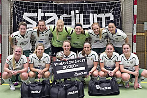 Ett par förluster mot bottenkonkurrenterna gjorde det spännande. Men Hammarby vann när det behövdes och man kryddade poängskörden genom en seger över slutstpelslaget Söråker. I landslagets F19-lag spelade i ett tidigt skede Antonia Cederlöf, Hanna Lundborg och Malin Carlsson. Karolina Kitty och Rebecka Beckman tillhörde säsongens första F17-trupp. De kom dock inte vidare när truppen skulle bantas till VM. Allsvenskan121117 (Relita Hallen)Uppsala-Hammarby 3-4 (2-1) Uppsala: Hanna Nygren, Ebba Åhlman, Klara Molin Hammarby: Johanna Haräng, Hanne Nikolaisen, Matilda Johansson, Lotta Sjöman Domare: Oscar Hall/Oskar Strand, Elias Torstensson Publik: 70 121124 (Zinkensdamm) Hammarby-Tranås 0-4 (0-1) Matilda Svenler 4 Domare: Robert Vangéus/Håkan Andersen, Jonas Rinnbäck Publik: 125 121201 (Skarpe Nord) Kareby-Hammarby 5-2 (4-2) Kareby: Johanna Gustafsson 2, Sandra Carlsson, Sophia Adolfsson, Camilla Johansson Hammarby: Hanne Nikolaisen, Matilda Johansson Domare: Alexander Börjesson/Simon Samuelsson, Börje Karlsson Publik: 68 121215 (Zinkensdamm) Hammarby-Sandviken 1-8 (1-4) Hammarby: Matilda Johansson Sandviken: Evelina Johansson 3, Linnea Gunnarsson 2, Johanna Pettersson 2, Hanne Gezelius Domare: Bosse Fasth/Klas Lindqvist, Håkan Andersen Publik: 50 121222 (Söråkers IP) Söråker-Hammarby 7-5 (4-0) Söråker: Malin Persson 3, Sandra Timan 2, Emilia Aldengård, Anna Hedin Hammarby: Matilda Johansson 2, Johanna Haräng, Malin Carlsson, Antonia Cedlöf Domare: Ulf Widmark/Mikael Byström, Daniel Yng Publik: 120 130106 (Bergshamra Arena) AIK-Hammarby 7-1 (4-1) AIK: Mikaela Hasselgren 3, Frida Erlandsson, Anna Månsson, Hanna Brusberg, Linnea Larsson Hammarby: Hanne Nikolaisen Domare: Håkan Brolin/Klas Lindkvist, Magnus Berglund Publik: 96 130109 (Zinkensdamm) Hammarby-Uppsala 7-0 (2-0) Matilda Johansson 3, Malin Carlsson, Hanne Nikolaisen, Galina Mikhaylova, Karolina Kitty Domare: Dennis Lisell/Tommy Svensson, VIktor Grahn Publik: 97 130119 (Bredstorp) Tranås-Hammarby 3-4 (0-2) Tranås: Matilda Svenler 2, Matilda Åkerstedt Hammarby: Hanne Nikolaisen, Karolina Kitty, Matilda Johansson, Lotta Sjöman Domare: Ulf Nilsson/Stefan Olsson, Adam Bruce Publik: 65 130123 (Zinkensdamm) Hammarby-Västerås 0-3 (0-1) Riina Elonen 3 Domare: Håkan Birgersson/Klas Lindqvist, Håkan Andersen Publik: 65 130126 (Zinkensdamm) Hammarby-Kareby 2-4 (1-1) Hammarby: Emelie Timan, Malin Carlsson Kareby: Johanna Gustafsson 3, Sandra Carlsson Domare: Jonas Rinnbäck/Felix Dahlberg, Håkan Andersen Publik: 102 130203 (ABB Arena Syd) Västerås-Hammarby 2-8 (0-3) Västerås: Sussanne Lehosmaa 2 Hammarby: Matilda Johansson 3, Galina Mikhaylova 2, Sofie Nyblad, Emelie Timan, Malin Carlsson Domare: Niklas Jewander/Mathias Nylén, Tommy Svensson Publik: 89 130209 (Göransson Arena) Sandviken-Hammarby 5-1 (1-0) Sandviken: Emma Ahlander 2, Johanna Pettersson 2, Evelina Johansson Hammarby: Matilda Johansson Domare: Linn Strömberg/Oscar Haraldsson, Daniel Strandell Publik: 72 130220 (Zinkensdamm) Hammarby-AIK 1-7 (1-4) Hammarby: Matilda Johansson AIK: Anna Lundin 2, Elin Öhgren, Anna Widing, Josefine Gustafsson, Michelle K Carlanius, Mikaela Hasselgren Domare: Joakim Jonsson/Felix Dahlberg, Bo Andersson Publik: 115 130223 (Bergshamra Arena) Hammarby-Söråker 4-1 (3-1) Hammarby: Malin Carlsson, Galina Mikhaylova, Lotta Sjöman, Sofia Berghager Söråker: Erika Persson Domare: Thomas Wiklund/Rolf Eriksson, Petter Jonsson Publik: 45 Publiksnitt: 86 (2:a i serien som hade 67 i snitt) World Cup121012 (Dina Arena, Edsbyn)Hammarby-Söråkers IF 5-1 (3-1) Hammarby: Matilda Johansson 3, Malin Carlsson 2 121012 Hammarby-Record Irkutsk 0-8 (0-3) 121013 Hammarby-Kareby IS 2-5 (0-3) Hammarby: Matilda Johansson 2 121014 (match om 7:e plats) Hammarby-Nordre Sande/Drammen 2-1 (1-1) Hammarby: Antonia Cedlöf, Lotta Sjöman SpelartruppenMålvakter:17. Elin Tengelin, 17 år 1. Maria Thorén, 25 år Försvarare: 25. Rebecka Beckman, 16 år 20. Antonia Cedlöf, 18 år, 1 mål 9. Michelle Nyström, 25 år 7. Linnea Älmdalen, 22 år Mittfältare: 22. Sofia Berghager, 18 år, 1 mål 10. Malin Carlsson, 18 år, 5 mål 6. Johanna Haräng, 23 år, 2 mål 23. Hanna Lundborg, 18 år 13. Hanne Nikolaisen, 25 år, 5 mål Anfallare: 19. Matilda Johansson, 23 år, 14 mål 16. Karolina Kitty, 15 år, 2 mål 21. Lotta Sjöman, 24 år, 3 mål Övriga: 61. Olivia Dahlsten, 12 år 4. Anna Klingborg, 32 år 14. Galina Mikhaylova, 23 år, 4 mål 2. Sofie Nyblad, 24 år, 1 mål (Team Hälsingland) 8. Emelie Timan, 20 år, 2 mål (AIK) Tränare: Hans Jeppsson Örjan Waldenfeldt Assisterand tränare: Jörgen Kitty Materialförvaltare: Ralf Lundborg Lagledare: Agne Karlsson BordtennisDivision 2 Östsvenska Norra120922 Hammarby-Södertälje 8-6120922 Tullinge-Hammarby 4-8 120923 Hammarby-Östermalm 4-8 120923 Innerstan-Hammarby 8-4 121117 Hammarby-Orminge 8-3 121117 Stockholms-Posten-Hammarby 7-7 121118 Aspudden-Hammarby 8-5 121118 Södertälje-Hammarby 8-4 130126 Hammarby-Tullinge 8-1 130126 Östermalm-Hammarby 5-8 130309 Hammarby-Innerstan 4-8 130309 Orminge-Hammarby 4-8 130310 Hammarby-Stockholms-Posten 8-6 130310 Hammarby-Aspudden 8-5 Division 3 Östsvenska Nordvästra120922 Midsommarkransen-Hammarby BoPS 5-8120922 Hammarby BoPS-Stocksund 8-4 120923 Hammarby BoPS-Stocksund 8-4 120923 Tyresö-Hammarby BoPS 8-2 121013 Hammarby BoPS-VIK-47 8-1 121013 Djurgården-Hammarby BoPS 6-8 121117 Hammarby BoPS-Boo 3-8 130112 Hammarby BoPS-Midsommarkransen 5-8 130112 Stocksund-Hammarby BoPS 7-7 130113 Vasastan-Hammarby BoPS 8-5 130113 Hammarby BoPS-Tyresö 4-8 130126 VIK-47-Hammarby BoPS 8-5 130216 Hammarby BoPS-Djurgården 8-1 130309 Boo-Hammarby BoPS 8-4 Division 5 Stockholm Södra121012 Boo-Hammarby BoPS B 8-6121021 Hammarby BoPS B-Stocksund 8-3 121028 Hammarby BoPS B-Tullinge 4-8 121116 Djurgården-Hammarby BoPS B 3-8 121125 Hammarby BoPS B-Vällingby 8-5 121204 VIK-47-Hammarby BoPS B 7-7 130113 Hammarby BoPS B-Sickla 8-0 130120 Hammarby BoPS B-Boo 8-
