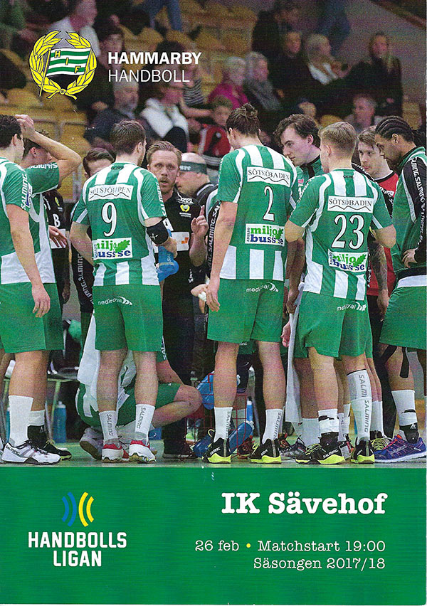SM Flickor 15 årGruppspel, Gamlishallen180203 Gamla Upsala-Hammarby 1-5180203 P18-Hammarby 0-17 180203 Viljan-Hammarby 0-9 Slutspel Grupp A, Idrottens Hus, Helsingborg180216 Luleå-Hammarby 2-2180217 Hammarby-Rödeby 8-3 180217 Hammarby-Lerum 3-1 Finalspel, Helsingborg Arena180218 Hammarby-Sollebrunns AIK 4-3 (semifinal)180219 Hammarby-Lerums IS 1-3 (final) Spelartruppen2. Magintou Bangoura30. Grace Cespedes 20. Vendela Dreifaldt 23. Ida Egegård 22. Malva Fors 55. Ellika Holmberg 19. Natalia Julia Maciaszczyk 8. Fanny Michelsson 15. Ida Nyberg 88. Melisa Shabanaj 11. Mimmi Skoog 10. Kim Vulic 1. Siri Zetterquist GoalballStockholm Paragames 181103-04Hammarby-IF Aktiva Synskadade, IFAS Elite 2-8 (gruppspel)Hammarby-BSI Valby Elite, Danmark 6-9 Hammarby-FF Synskadade Barn och Ungdomar, FSBU Elite 4-8 Hammarby-IF Aktiva Synskadade, IFAS Elite förlust (semifinal) Hammarby-BSI Valby Elite, Danmark 8-6 (match om 3:e pris) Handboll, herrar