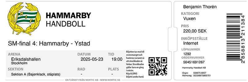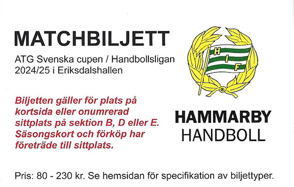 Hammarby Handboll kom visserligen ”bara” sjua i serien, men sen exploderade laget (och Eriksdalshallen) i match efter match i slutspelet. Först smulades ”omöjliga” Kristianstad i tre raka. OV Helsingborg fick visserligen en uddamålsseger i semifinalen, men Hammarby vann klart med 3-1. Samma siffror vann sen storfavoriten Ystads IF i finalspelet, dock efter fyra knallhårda matcher inför en fullkomligt extatisk publik. Hammarbys tokvändning i den andra finalen kommer att gå till historian som ett stort Hammarbyminne. Oliver Wigmark representerade det svenska ligalandslaget i en dubbellandskamp mot Norge i mars. Han blev efter säsongen utsedd till högersexa i Handbollsligans All Star Team. Hammarby hade med en spelare i U20-truppen som spelade Scandinavian Open på försäsongen. Det var den nye målvakten från Önnered, Arvid Skoog. Han deltog sen i U20-EM där Sverige slutade femma. Skoog var även med i U21-landslaget i VM som tog sig till semifinal där man dock förlorade efter förlängning mot blivande världsmästaren Danmark. I U18-landslaget, som vann EM på försäsongen, spelade målvakten Olle Söderqvist. Handbollsligan240914 (Eriksdalshallen)Hammarby-Skövde 28-31 (15-15) Hammarby: Oliver Wigmark 8, Alexander Morsten 5, Ludvig Lindeberg 5, Richard Lindström 3, Marcus Lennernäs 3, Viktor Ahlstrand 3, Henrik Olsson Skövde: Jonas Burud 7, Adam Ljungquist 6, Sebastian Fagerdahl 5, Jonas Samuelsson 5, Daniel Ekman 2, Rex Blom 2, William Elovson, Victor Ljungquist, Herman Dyberg, Arvid Uusvog Domare: Mirza Kurtagic, Mattias Wetterwik Publik: 1 288 240921 (ÖHK-Hallen) Önnered-Hammarby 25-26 (14-11) Önnered: Markus Thorbjörn 7, Andreas Nilsson 6, Alfred Ehn 5, Måns Fredriksson 2, Hugo Forsberg 2, Anton Blickhammar, Patrick Bols, Pelle Segertoft Hammarby: Oliver Wigmark 8, Marcus Lenneräs 5, Simon Lindberg 4, Henrik Olsson 3, Ludvig Lindeberg 2, Richard Lindström 2, Viktor Ahlstrand, Vasco Costa Domare: Michael Sandström, Markus Winberg Publik: 875 240925 (Eriksdalshallen) Hammarby-Amo 32-27 (21-15) Hammarby: Oliver Wigmark 8, Ludvig Lindeberg 5, Vasco Costa 5, Marcus Lennernäs 4, Henrik Olsson 3, Alexander Morsten 2, Viktor Ahlstrand 2, Simon Lindberg, Johan Ericsson, Max Gugolz Amo: Minik Høegh 7, Anders Christiansen 5, Jonas Jensen 3, Arnar Birkir Halfdansson 3, Mathias Mark Pedersen 2, Anders Forsell Schefvert 2, Elias Lundstad 2, Hampus Karlsson, Nils Schröder, Jacob Jensen Lehnert Domare: Glenn Korsar, Jonas Torman Publik: 1 126 241002 (Estrad Alingsås) Alingsås-Hammarby 29-24 (15-8) Alingsås: Oscar Gentzel 7, Samuel Lindberg 5, Johan Nilsson 4, Gustav Jönne 3, Petter Donaldson 2, Albin Hägglund Junler 2, Alexander Regen 2, Benjamin Helander 2, Anton Hagvall, Jacob Lundahl Hammarby: Oliver Wigmark 10, Marcus Lennernäs 4, Henrik Olsson 3, Max Gugolz 2, Ludvig Lindeberg 2, Anders ik Rydberg 2, Simon Lindberg Domare: Rickard Canbro, Jasmin Kliko Publik: 1 222 241006 (Eriksdalshallen) Hammarby-Hallby 27-25 (10-10) Hammarby: Oliver Wigmark 8, Marcus Lennernäs 7, Alexander Morsten 5, Ludvig Lindeberg 2, Viktor Ahlstrand 2, Henrik Olsson, Vasco Costa, Josef Pujol Hallby: Hampus Söderman 5, Oskar Hedvall 3, Albin Broman 3, Erik Rudvall 3, Ludvig Högberg 2, Charles Hugoson 2, ANdreas Söderman 2, Roi Ellefsen A Skipagøtu 2, Martin Mårtensson, Kenan Omerovic, Robert Ladan Domare: Hans Lejon, Erik Nielsen Publik: 1 002 241012 (Ystad Arena) Ystad-Hammarby 36-29 (18-14) Ystad: Julius Lindskog Andersson 8, Jakob Nygren 7, Niclas Ekberg 6, Kristian Olsen 5, Anton Månsson 4, Oskar Joelsson 3, Linus Femebrand 2, Jonatan Wilthorn Hammarby: Viktor Ahlstrand 7, Vasco Costa 5, Ludvig Lindeberg 4, Alexander Morsten 3, Oliver Wigmark 3, Martin Dolk 2, Johan Ericsson, Max Gugolz, Marcus Lennernäs, Henrik Olsson, Josef Pujol Domare: Niclas Widell, Jonas Åström Publik: 1 492 241019 (Eriksdalshallen) Hammarby-Malmö 30-27 (16-12) Hammarby: Oliver Wigmark 12, Henrik Olsson 5, Viktor Ahlstrand 3, Martin Dolk 3, Vasco Costa 2, Alexander Morsten 2, Kevin Johansson-Eggan, Max Gugolz, Marcus Lennernäs Malmö: Hugo Stuivers 6, Rasmus Thorbjörnsson 5, Truls Grøtta 5, Alfred Olsson 4, Arvid Johansson 2, Martin Blomqvist, Felix Montebovi, Tim Hilding, Love Sundewall, Harry Jablonsky Domare: Emil Blanck, Martin Strand Publik: 1 640 241025 (Volvo CE Arena) Eskilstuna Guif-Hammarby 29-28 (15-13) Guif: Fredrik Gustavsson 6, Zeb Bjerneld 5, Isak Borg 5, Richard Hanisch 4, Nikola Roganovic 3, Olle Österhall 3, Melker Norman 2, Jesper Nielsen Hammarby: Marcus Lennernäs 6, Oliver Wigmark 5, Henrik Olsson 4, Viktor Ahlstrand 4, Martin Dolk 3, Alexander Morsten 2, Anders Wik-Rydberg 2, Vasco Costa, Kevin Johansson-Eggan Domare: Michael Sandström, Markus Winberg Publik: 1 722 241030 (Eriksdalshallen) Hammarby-Karlskoga 35-25 (16-12) Hammarby: Oliver Wigmark 8, Henrik Olsson 7, Marcus Lennernäs 5, Viktor Ahlstrand 4, Martin Dolk 3, Ludvig Lindeberg 3, Vasco Costa 2, Kevin Johansson-Eggan, Alexander Morsten, Josef Pujol Karlskoga: Dagur Sverrir Kristjansson 4, Albin Stenberg 4, Filip Psajd 3, Fredrik Hellgren 3, Karl Jönsson 3, Markus Viitkar 2, Isak Larsson 2, Axel Söderqvist, Hugo Sivertsson, William Eriksson, Tobias Nordahl Domare: Kenneth Cardell, Sandro Smaiagic Publik: 1 703 241113 (Vikingahallen) Skånela-Hammarby 29-34 (14-18) Skånela: Max Broman 8, Gustav Näslund 5, David Källemyr 5, Tobias Johansson 4, Linus Wärnmark 2, Isak Svarén 2, Simon Lindberg, Henrik Smedby, Anton Nilsson Hammarby: Henrik Olsson 8, Vasco Costa 8, Marcus Lennernäs 5, Ludvig Lindeberg 3, Josef Pujol 3, Kevin Johansson-Eggan 2, Alexander Morsten 2, Theo Deurell 2, Martin Dolk Domare: Jonas Åström, Niclas Widell Publik: 648 241120 (Eriksdalshallen) Hammarby-Kristianstad 37-36 (18-12) Hammarby: Martin Dolk 10, Henrik Olsson 6, Josef Pujol 4, Theo Deurell 4, Alexander Morsten 3, Vasco Costa 3, Marcus Lennernäs 3, Ruben Vojbacke 2, Kevin Johansson-Eggan, Ludvig Lindeberg Kristianstad: Ax