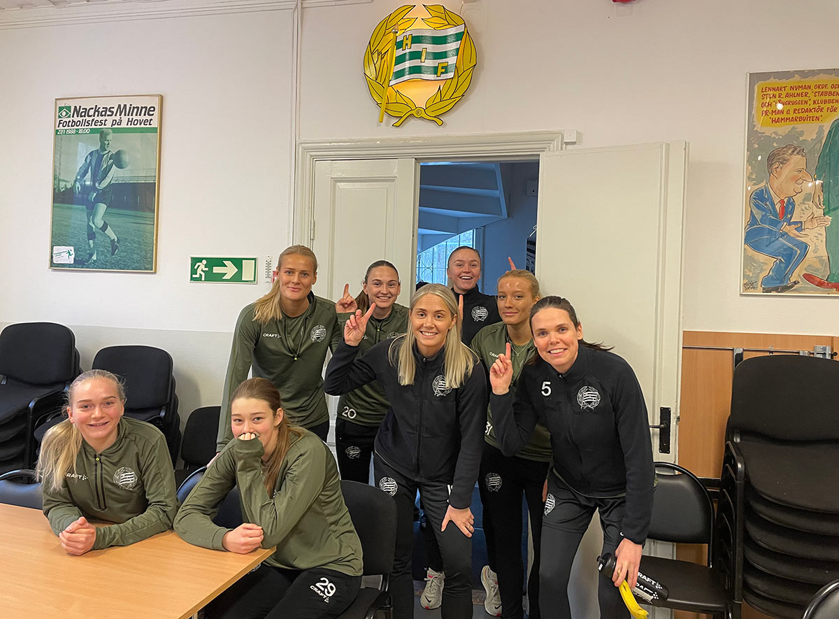 Även detta år hade Hammarby representation i A-landslaget. Det var Ellen Wangerheim som fick debutera i Nations League mot Italien den 4 april. Även Smilla Holmberg fick debutera i blågult. Bägge deltog i EM där Sverige snöpligt åkte ut i kvartsfinalen mot blivande mästarna England efter en usel straffläggning som England vann med 3-2 efter sju straffar var. Smilla Holmberg hade oturen att lägga Sveriges sista straff som hon sköt över. Det var dock långt ifrån den sämsta straffen i tävlingen. Hon hade tidigare i turneringen imponerat stort. Moa Edrud, Athinna Persson Lundgren, Bea Sprung, Ellen Wangerheim, Sofia Reidy och Bella Andersson spelade i U23-landslaget. Bella Andersson, Smilla Holmberg och Lykke Ihrfelt representerade F19-landslaget. F18-landslaget innehöll följande spelare från Hammarby: Doris Petz, Fanny Jurander och Sally Nylén. I F17-landslaget figurerade Nicole Molin Kock, Klara Ahnberg, Anna Linder, Doris Petz, Fanny Jurander, Roos Huitzing, Inés Lorenius, Fanny Peterson, Sally Nylén, Alice Olsson, Thea Eriksson, Stina Myrén, Stella Maiquiez under säsongen. Även F16-landslaget hade stor Hammarbyrepresentation; Leah Kembel, Thea Eriksson, Fanny Peterson, Ellie Junetoft, Stella Maiquiez, Mia Juhlin Öhberg, Felizia Nilsson Narverud, Alice Olsson, Stina Myrén, Ebba Hedlund. I F15-landlaget spelade Ellie Röhr, Emma Karlsson Eriksson, Nora Blom och Elvira Wide. Allsvenskan250323 (Hammarby IP)Hammarby-Växjö 4-1 (3-0) 1-0 28 Ellen Wangerheim, 2-0 31 Smilla Holmberg, 3-0 43 Smilla Holmberg, 3-1 47 Maja Bodin, 4-1 52 Ellen Wangerheim Varningar, Hammarby: Bella Andersson Växjö: Maja Bodin Domare: Tess Olofsson/Almira Spahic, Ida Kellström, Hanna Laajanen Publik: 2 174 250329 (Bilbörsen Arena) Linköping-Hammarby 0-5 (0-2) 0-1 15 Smilla Holmberg, 0-2 20 Ellen Wangerheim, 0-3 53 Ellen Wangerheim, 0-4 62 Ellen Wangerheim, 0-5 88 Nadia Nadim Varning, Hammarby: Stina Lennartsson Domare: Selma Griberg/Tilde Hedberg, Josefine Bastås, Joel Wessman Publik: 867 250414 (Hammarby IP) Hammarby-Rosengård 4-0 (4-0) 1-0 4 Julie Blakstad, 2-0 18 Ellen Wangerheim (Stina Lennartsson), 3-0 41 Smilla Holmberg (Julie Blakstad), 4-0 44 Vilde Hasund (Smilla Holmberg) Varningar, Hammarby: Emilie Bragstad, Athinna Persson Lundgren Rosengård: Emilia Pelgander, Hanna Andersson Domare: Lovisa Johansson/Emelie Elfstrand, Alexander Öhnedal, Adli Assali Publik: 2 069 250419 (Grimsta IP) Brommapojkarna-Hammarby 1-4 (0-1) 0-1 33 Cathinka Tandberg (Vilde Hasund), 0-2 62 Bella Andersson (Ellen Wangerheim), 0-3 72 Smilla Vallotto, 0-4 77 Vilde Hasund, 1-4 88 Emma Engström Varning, BP: Frida Thörnqvist Domare: Eva Svärdsudd/Laura Rapp, Andreas Manea, Paul Shamoun Publik: 435 250426 (Eleda Stadion) Malmö-Hammarby 1-1 (0-0) 0-1 58 Ellen Wangerheim (Vilde Hasund), 1-1 88 Isabella D’Aquila (Nellie Lilja) Varningar, Malmö: Agnes Mårtensson Hammarby: Asato Miyagawa, Stina Lennartsson Domare: Selma Griberg/Jilan Taher, Magnus Blennersjö, Fidan Hasani Publik: 1 918 250505 (Hammarby IP) Hammarby-Häcken 1-0 (0-0) 1-0 54 Julie Blakstad (Asato Miyagawa) Varningar, Hammarby: Moa Edrud Häcken: Mary Caroline Wickenheiser, Emma Östlund Domare: Hanna Laajanen/Alisa Levälampi, Emelie Elfstrand, Oscar Forsberg Publik: 2 016 250510 (Skytteholm) AIK-Hammarby 1-0 (0-0) 1-0 79 Villemo Dahlqvist (Haruna Tabata) Varningar, AIK: Athanassios Papadopoulos, ass tränare Hammarby: Bella Andersson Domare: Cecilia Ekwall/Magnus Blennersjö, Alexander Eriksson, Jesper Fredholm Publik: 1 338 250517 (Hammarby IP) Hammarby-Piteå 2-1 (1-0) 1-0 41 Julie Blakstad (Vilde Hasund), 2-0 Ellen Wangerheim (Anna Jøsendal), 2-1 88 Wilma Carlsson Varningar, Hammarby: Smilla Vallotto Piteå: Olivia Holm, Maja Green, Emma Viklund Domare: Selma Griberg/Mimmi Damtew, Andreas Manea, Lukas Wallin Publik: 1 216 250524 (Kristianstads Fotbollsarena) Kristianstad-Hammarby 2-0 (0-0) 1-0 47 Amy Sayer (Alice Egnér), 2-0 85 Katia Tryggvadottir (Remy Slemsen) Varningar, Hammarby: Emilie Bragstad Domare: Lovisa Johansson/Jilan Taher, Magnus Blennersjö, Ahmed Al-Kodri Publik: 585 250608 (Hammarby IP) Hammarby-Vittsjö 3-2 (0-1) 0-1 12 Elisabet Klinga, 1-1 46 Ellen Wangerheim, 2-1 66 Ellen Wangerheim (Stina Lennartsson), 3-1 74 Vilde Hasund (Julie Blakstad), 3-2 90 Nellie Persson Varningar, Vittsjö: Elisabet Klinga Domare: Ulrica Löv/Camilla Stendahl, Laura Rapp, Jesper Fredholm Publik: 1 811 250616 (Hammarby IP) Hammarby-Djurgården 2-1 (1-0) 1-0 3 Asato Miyagawi (Smilla Holmberg), 1-1 77 Therese Åstad straff, 2-1 90 Julie Blakstad (Emilie Joramo) Varning, Hammarby: Emilie Joramo Domare: Tess Olofsson/Almira Spahic, Ida Kellström, Lukas Wallin Publik: 3 312 250622 (Platinumcars Arena) Norrköping-Hammarby 2-2 (2-1) 1-0 1 Svea Rehnberg, 1-1 26 Emilie Joramo, 2-1 36 Ebba Handfast, 2-2 88 Nadia Nadim (Bella Andersson) Varning, Hammarby: Stina Lennartsson Domare: Eva Svärdsudd/Jilan Taher, Magnus Blennersjö, Joel Wessman Publik: 1 323 250808 (Hammarby IP) Hammarby-Alingsås 7-0 (4-0) 1-0 8 Anna Jösendal (Ellen Wangerheim), 2-0 27 Ellen Wangerheim (Anna Jøsendal), 3-0 41 Julie Blakstad, 4-0 45+1 Julie Blakstad, 5-0 56 Julie Blakstad, 6-0 75 självmål, 7-0 83 Julie Blakstad (Ellen Wangerheim) Varning, Alingsås: Johanna Barth Domare: Isabelle Svensson/Ludvig Marklund Palmberg, Nikolaj Vikström, Ulrica Löv Publik: 1 722 250812 (Malmö IP) Rosengård-Hammarby 2-2 (2-0) 1-0 28 Anam Imo (Anastasiya Pabiahalla), 2-0 40 Thea Sörbo (Hanna Andersson), 2-1 47 Vilde Hasund (Ellen Wangerheim), 2-2 50 Vilma Koivisto Varningar, Rosengård: Molly Johansson, Samantha Leshnak Murphy Domare: George Jansizian/Luke Kyqyku, Bedran Celik, Isabelle Svensson Publik: 787 250816 (JIABvallen, Luleå) Piteå-Hammarby 0-5 (0-3) 0-1 3 Ellen Wangerheim (Anna Jøsendal), 0-2 21 Emilie Bragstad, 0-3 37 Anna Jøsendal (Ellen Wangerheim), 0-4 69 Ellen Wangerheim (Asato Miyagawa), 0-5 91 Alice Carlsson (Emilie Joramo) Domare: Eva Svärdsudd/Tilde Hedberg, L