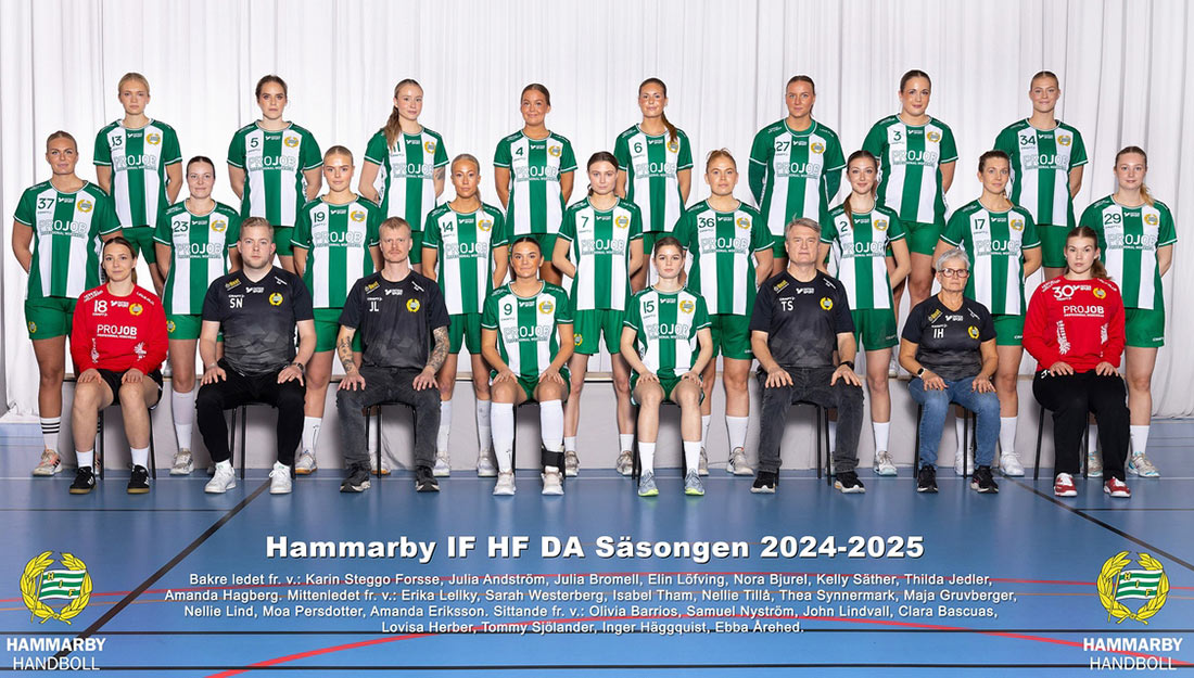 Division 1 Norra241005 (Eriksdalshallen)Hammarby-Huddinge 15-24 (10-11) Hammarby: Amanda Hagberg 4, Kelly Säther 4, Emily Thompson 2, Maja Gruvberger 2, Isabel Tham, Anna Eriksson, Johanna Flygelholm Huddinge: Maja Gränsfelt 7, Ebba Ahlgren 4, Fanny Axerell Björkman 3, Felicia Vikström 2, Sol Karlsson 2, Maggie Dahllöf 2, Irma Jernström 2, Thea Edlund, Tyra Andreasson Domare: Christoffer Möller, Elias Granqvist Publik: 181 241013 (Tumba Idrottshus) Tumba-Hammarby 24-22 (11-12) Tumba: Erika Nylund 5, Tilda Lidén 4, Lisa Ahlén 3, Maya Elvefors Wallin 3, Elin Nilsson 2, My Aggefors 2, Jonna Lundblad 2, Klara Kjellgren 2, Isabella Nelson Leppänen Hammarby: Amanda Hagberg 5, Kelly Säther 4, Julia Bromell 4, Emily Thompson 3, Filippa Ovendal 2, Johanna Flygelholm 2, Isabel Tham, Nellie Lind Domare: William Hellstedt, Adrian Germer Publik: 225 241015 (Ekhammarhallen) Kungsängen-Hammarby 21-17 (10-11) Kungsängen: Isabelle Jidmar 9, Ida Åkesson 3, Amanda Lövgren 3, Maja Jonsson 2, Ella Bernberg, Jennie Waltin, Felicia Axéen, Mia Dzubur Hammarby: Kelly Säther 6, Amanda Hagberg 3, Julia Andström 3, Isabel Tham 2, Johanna Flygelholm, Julia Bromell, Emily Thompson Domare: Senad Kamberovic, Nenad Joksic Publik: 78 241018 (Eriksdalshallen) Hammarby-Strand 17-20 (10-10) Hammarby: Kelly Säther 5, Julia Bromell 3, Johanna Flygelholm 3, Filippa Ovendal 2, Amanda Hagberg, Emily Thompson, Julia Andström, Clara Bascuas Strand: Olivia Mansnerus 4, Terese Wikström 3, Julia Ekvall 3, Julia Huusko Smeds 3, Tilda Ekvall 3, Jonna Lindgren 2, Emma Persson, Louise Löfgren Domare: Christoffer Möller, Elias Granqvist Publik: 272 241027 (Högdalshallen) Silwing Troja-Hammarby 24-22 (10-9) Silwing Troja: Vanessa Mate Romul 6, Jenny Davidsson 5, Frida Moberg 3, Stephanie Johansson 3, Olivia Strömberg 3, Erika Åkerlind 2, Linnea Siggeson, Johanna Gillhart Hammarby: Johanna Flygelholm 6, Kelly Säther 6, Amanda Hagberg 4, Nellie Tillå 3, Julia Andström 2, Nellie Lind Domare: Elias Granqvist, Christoffer Möller Publik: 98 241102 (Eriksdalshallen) Hammarby-Eskilstuna Guif 21-17 (8-8) Hammarby: Kelly Säther 7, Emily Thompson 5, Johanna Flygelholm 3, Julia Bromell 2, Julia Andström 2, Nellie Tillå, Filippa Ovendal Guif: Tuva Nilsson 6, Tilde Jäderholm 3, Sofie Olsson 2, Thea Axdorph 2, Cajsa Sällström 2, Alva Enblad, Ebba Jansen Domare: Titus Mondore, Senad Kamberovic Publik: 104 241110 (Smedshagshallen) Spånga-Hammarby 24-33 (9-19) Spånga: Hedvig Grewin 6, Linn Thorén 6, Julia Antonelius 5, Lizzie Atterfors 3, Olivia Bundesen 2, Izabella Agerhäll, Alexandra Kaustinen Hammarby: Johanna Flygelholm 10, Julia Andström 7, Kelly Säther 6, Maja Gruvberger 3, Emily Thompson 2, Thilda Jedler, Amanda Hagberg, Julia Bromell, Nellie Tillå, Clara Bascuas Domare: Robert Engholm, Victor Horvath Publik: 32 241117 (Västerås Arena) VästeråsIrsta-Hammarby 24-25 (10-15) Irsta: Frida Wikblad 5, Vilma Hoveklint 4, Alma Norling 4, Maja Axell 4, Stella Gradin 2, Matilda Gillström 2, Elvira Olérs, Bella Carlzon, Maia Nysten Hammarby: Johanna Flygelholm 7, Amanda Hagberg 6, Julia Andström 4, Clara Bascuas 3, Nellie Tillå 2, Emily Thompson 2, Kelly Säther Domare: Mattias Samuelsson, Victor Horvath Publik: 101 241124 (Vintervikshallen) Hammarby-Boden 27-19 (16-8) Hammarby: Kelly Säther 7, Amanda Hagberg 5, Erika Lellky 2, Emily Thompson 2, Isabel Tham 2, Clara Bascuas 2, Julia Bromell 2, Julia Andström 2, Johanna Flygelholm 2, Nellie Tillå Boden: Malin Häggström 7, Sally Lindström 5, Matilda Jonsson 3, Hanna Åström 2, Fanny Jäger Röding, Alice Edholm Domare: William Hellstedt, Adrian Germer Publik: 113 241130 (Maserhallen) Borlänge-Hammarby 19-27 (11-12) Borlänge: Alice Almqvist 8, Annie Gustaves 4, Maja Svanberg 3, Alva Norberg 2, Sandrea Wickman, Nellie Karlsson Hammarby: Johanna Flygelholm 10, Kelly Säther 5, Clara Bascuas 3, Julia Bromell 3, Amanda Hagberg 3, Emily Thompson 2, Maja Gruvberger Domare: Hanna Göthlin, Nenad Joksic Publik: 90 241208 (Skärholmshallen) Hammarby-Nacka 31-17 (14-5) Hammarby: Julia Bromell 8, Johanna Flygelholm 5, Emily Thompson 4, Amanda Hagberg 4, Maja Gruvberger 4, Nellie Tillå 2, Kelly Säther 2, Lovisa Herber, Isabel Tham Nacka: Elina Kortelainen 3, Matilda Antin 3, Elsa Otterström 3, Vilma Kangas 3, Corinne von Knorring 2, Nellie Nordin, Mini Mowinski, Ida Hammarström Domare: Robert Engholm, Kenneth Elfgren Publik: 65 241215 (Nacka Bollhall) Nacka-Hammarby 19-28 (8-11) Nacka: Corinne von Knorring 5, Nellie Norlin 4, Mini Mowinski 4, Hanna Rasmusson, Matilda Antin, Elsa Otterström, Lisa Beer, Vilma Kangas, Frida Jervanius Hammarby: Johanna Flygelholm 8, Julia Bromell 4, Maja Gruvberger 4, Kelly Säther 3, Ida Eriksson 3, Amanda Hagberg 2, Emily Thompson 2, Isabel Tham, Nellie Tillå Domare: Elias Granqvist, Christoffer Möller Publik: 134 240111 (Eriksdalshallen) Hammarby-VästeråsIrsta 29-21 (13-9) Hammarby: Kelly Säther 7, Johanna Flygelholm 5, Amanda Hagberg 3, Julia Bromell 3, Ida Eriksson 3, Emily Thompson 2, Isabel Tham 2, Clara Bascuas, Nellie Lind, Maja Gruvberger, Erika Lellky VästeråsIrsta: Matilda Gillström 7, Elvira Olérs 3, Vilma Hoveklint 2, Tindra Samuelsson 2, Stella Gradin 2, Maia Nysten 2, Wilma Rasmus, Märta Grimerö, Frida Wikblad Domare: Erik Lundkvist, Jonas Ottosson Publik: 290 250118 (Hudiksvall Idrottshall) Strand-Hammarby 22-23 (12-11) Strand: Tilda Ekvall 8, Terese Wikström 4, Ida Myrseth 3, Julia Huusko Smeds 3, Julia Ekvall 2, Emma Person, Olivia Mansnerus Hammarby: Kelly Säther 5, Nellie Lind 4, Ida Eriksson 4, Julia Bromell 4, Johanna Flygelholm 3, Amanda Hagberg 2, Nellie Tillå Domare: Asta Pettersson, Hanna Göthlin Publik: 218 250126 (Skärholmshallen) Hammarby-Kungsängen 22-21 (12-10) Hammarby: Julia Bromell 4, Amanda Hagberg 4, Johanna Flygelholm 3, Kelly Säther 3, Maja Gruvberger 3, Nellie Lind, Clara Bascuas, Nellie Tillå, Isabel Tham, Erika Lellky Kungsängen: Isabelle Jidmar 4, Julia Ottosson 4, Mia D