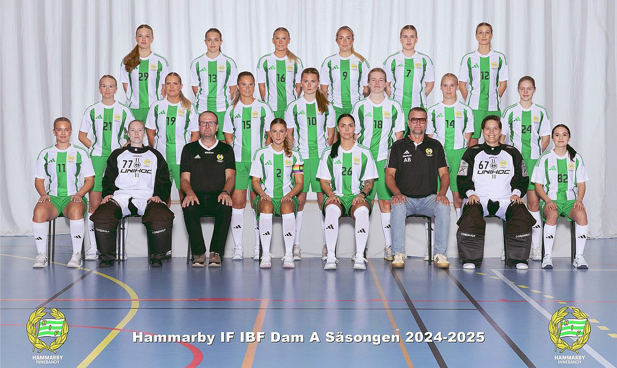 Allsvenskan Norra240921 (Skyttis Arena)Örnsköldsvik-Hammarby 5-3 (2-1, 2-0, 1-2) Örnsköldsvik: Wilma Nordin 2, Ebba Selin, Hanna Asplund, Linn Hilli Hammarby: Hanna Adamsson-Loreby, Linnea Wiregård, Tyra Müller-Nord Publik: 189 240928 (Sjöstadshallen) Hammarby-AIK 1-5 (1-0, 0-1, 0-4) Hammarby: Andrea Frostenson AIK: Josefine Strid 2, Thea Arvidsson, Freja Norrman, Maja Bergbom Publik: 178 241005 (Olandshallen) Alunda-Hammarby 5-3 (1-1, 3-1, 1-1) Alunda: Jasmine Van der Veen, Paulin Andersson, Jonna Westerholm, Ida Johansson, Sanna Oljemark Hammarby: Emelie Raab, Ida Ulltin, Agnes Burell Publik: 217 241009 (Sjöstadshallen) Hammarby-Älvsjö 6-2 (1-0, 5-1, 0-1) Hammarby: Linnea Wiregård 2, Ebba Svanholm, Felicia Envall, Ida Ulltin, Agnes Burell Älvsjö: Anna Monthan, Anna Jonsson Publik: 142 241013 (Storvreta Sporthall) Storvreta-Hammarby 5-3 (3-0, 0-1, 2-2) Storvreta: Ebba Johansson, Jonna Vuontisvaara, Selma Frykholm, Maja Brodin, Charlotte Bravo Hammarby: Ida Ulltin, Ida Torbjörner, Hanna Adamsson-Loreby Publik: 157 241019 (Sjöstadshallen) Hammarby-RIG Umeå 4-4 (2-2, 0-1, 2-1, 0-0) Hammarby: Ebba Svanholm 2, Felicia Envall, Hanna Adamsson-Loreby RIG Umeå: Tilda Hammartedt 2, Sophia Ryttergaard, Zaga Lövdahl Publik: 152 241026 (Sjöstadshallen) Hammarby-Nacka 1-3 (0-0, 1-0, 0-3) Hammarby: Ida Ulltin Nacka: Victoria Ström 2, Vilde Rundfloen Publik: 60 241102 (Umeå Energi Arena) Umeå Västra-Hammarby 5-5 (2-1, 1-2, 2-2) Umeå: Mimmi Eklund, Mimmi Edlund, Clara Nilsson Persbo, Stella Söderberg, Liny Nyby Hammarby: Linnea Wiregård 3, Amanda Rodin, Ida Ulltin Publik: 86 241116 (Sundsvalls Sporthall) Sundsvall-Hammarby 4-3 (2-2, 1-1, 1-0) Sundsvall: Olivia Isaksson 3, Saga Karlsson Hammarby: Dina Eklöf, Ellen Wistedt, Linnea Wiregård Publik: 123 241123 (Sjöstadshallen) Hammarby-Åkersberga 5-4 (0-2, 0-0, 5-2) Hammarby: Ebba Svanholm 2, Hanna Adamsson-Loreby 2, Dina Eklöf Åkersberga: Moa Delshammar, Linn Reher, Lovisa Byman, Sanna Ulvhag Publik: 86 241130 (Umeå Energi Arena Väst) Dalen-Hammarby 2-6 (0-2, 0-2, 2-2) Dalen: Emilia Andersson, Wilma Bäcklund Hammarby: Emelie Raab 3, Emelie Persson-Lindeborg, Lisa Dahl, Amanda Rodin Publik: 82 241221 (Sjöstadshallen) Hammarby-Örnsköldsvik 4-4 ef (0-0, 2-2, 2-2, 0-0) Hammarby: Ebba Svanholm, Linnea Wiregård, Dina Eklöf, Hanna Adamsson-Loreby Örnsköldsvik: Klara Sundell, Frida Tjärnström, Hanna Asplund, Tindra Bylund Publik: 78 250112 (Solnahallen) AIK-Hammarby 1-0 (0-0, 0-0, 1-0) Thea Arvidsson Publik: 218 250118 (Sjöstadshallen) Hammarby-Alunda 5-6 (2-1, 2-1, 1-4) Hammarby: Lisa Dahl, Andrea Frostenson, Elin Burell, Hanna Adamsson-Loreby, Ida Torbjörner Alunda: Fanny Blad 3, Elin Höglund, Paulin Andersson, Hanna Björndahl Publik: 102 250122 (Västertorpshallen) Älvsjö-Hammarby 6-2 (1-0, 1-2, 4-0) Älvsjö: Cecilia Monthan 2, Anna Monthan, Anna Jonsson, Tuva Henriksson, Tilde Olsson-Åhman Hammarby: Ida Ulltin, Ebba Svanholm Publik: 92 250125 (Sjöstadshallen) Hammarby-Storvreta 2-5 (1-1, 0-0, 1-4) Hammarby: Ida Torbjörner, Hanna Adamsson-Loreby Alunda: Anna Wijk 2, Amanda Ljunggren, Jonna Vuontisvaara, Maja Brodin Publik: 112 250209 (Umeå Energi Arena Väst) RIG Umeå-Hammarby 10-4 (2-2, 2-0, 6-2) Umeå: Alva Törnros 3, Zaga Lövdahl 2, Elin Wadell, Hilma Hörnsten, Sophia Ryttergaard, Tilda Hammarstedt, Engla Johansson Hammarby: Hanna Adamsson-Loreby, Hanna Englund, Agnes Burell, Ebba Svanholm Publik: 57 250215 (Ormingehallen) Nacka-Hammarby 5-2 (1-2, 2-0, 2-0) Nacka: Wilma Löwenthal 2, Vilde Rundfloen, Ida Hultman, Josefin Ekerhov Hammarby: Amanda Rodin, Amanda Torbjörner Publik: 83 250222 (Sjöstadshallen) Hammarby-Umeå Västra 5-2 (0-0, 3-2, 2-0) Hammarby: Amanda Torbjörner, Amanda Rodin, Hanna Adamsson-Loreby Umeå: Elsa Lindgren, Alva Granlund Publik: 29 250301 (Sjöstadshallen) Hammarby-Sundsvall 0-9 (0-4, 0-2, 0-3) Milla Lundberg 2, Stina Swedin, Saga Karlsson, Olivia Isaksson, Lova Blomberg, Agnes Wiklund, Amalie Tysland, Engla Fjellström 250308 (Österåkers Multiarena) Åkersberga-Hammarby 3-1 (1-0, 1-0, 1-1) Åkersberga: Moa Delshammar 3 Hammarby: Emelie Persson-Lindeborg Publik: 184 250316 (Sjöstadshallen) Hammarby-Dalen 5-4 (1-0, 0-1, 4-3) Hammarby: Amanda Torbjörner 2, Amanda Rodin, Dina Eklöf, Ellen Wistedt Dalen: Tilde Blömer 2, Ida Pettersson, Hilda Skyttberg Publik: 77 DM - Bäst i stanHammarby B-FBC Kungsholmen B 7-1 (gruppspel)Hammarby B-Salems IF 5-3 Hammarby B-Ekerö IK 3-3 Sköndals BK-Hammarby B 4-6 (8-delfinal) Ekerö IK-Hammarby A 2-4 (8-delsfinal) Nacka IBK-Hammarby A 8-2 (kvartsfinal) Hammarby B-Åkersberga IBF 3-4 es (kvartsfinal) Träningsmatcher240910 Huddinge IBS-Hammarby240912 Hammarby-Vallentuna IBK JDM - Bäst i stan, F14Hammarby-Tyresö Trollbäcken OBK 1-2 (gruppspel)Hammarby-Väsby AIK 6-0 Hammarby-FBI Tullinge 5-0 Hammarby-Skogås/Trångsund IBK 2-5 SpelartruppenMålvakter:67. Cecilia Fredriksson, 27 matcher-0 mål 77. Maja Gårdh, 28-0 Backar: 37. Elin Burell, 14-1 2. Dina Eklöf, 27-4 15. Frida Elison, 15-1 10. Tyra Ferringmark, 4-0 (Värmdö IF) 26. Andrea Frostenson, 22-3 17. Josefin Sjölund Larsson, 5-0 23. Laura Mertsalmi, 4-0 (Råsunda IS) 18. Tyra Müller-Nord, 16-2 24. Emelie Raab, 20-50 12. Amanda Rodin, 28-5 19. Ida Torbjörner, 28-4 Forwards: 23. Hanna Adamsson-Loreby, 27-10 82. Hanna Englund, 10-1 (Huddinge IBS) 11. Filippa Jennesäter, 12-0 20. Selma Johansson, 7-0 (IFB Backadalen) 25. Olivia Lidberg, 1-0 (Värmdö IF) 16. Agnes Moquist, 25-0 27. Emelie Persson-Lindeborg, 14-2 (Värmdö IF) 22. Ida Petrén-Lantz, 7-0 (Huddinge IBS) 7. Amanda Torbjörner, 19-3 29. Ida Ulltin, 27-6 9. Linnea Wiregård, 26-8 (FBC Katrineholm) 21. Ellen Wistedt, 22-2 (Järfälla Bele IBK) Centrar: 49. Agnes Burell, 14-3 14. Lisa Dahl, 16-6 32. Felicia Envall, 9-2 Tränare: Andreas Berglind Videogranskning: Andrea Kratz Lagledare: Amie Roos Säkerhetsansvarig: David Roos