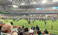 Efter säsongen utsåg föreningen vinnare i fyra olika kategorier: Årets Hammarbyare: Antonios Faniadis Årets ledare: Ola Kvarnström, Julian Bevan, Andreas Ekmander, Jonna Kylengren Årets ideella kraft: Virre Annergård, Jane Osman Årets hederspris: Jesper Liljestrand Allsvenskan Norra250517 (Gubbängen)Hammarby-Attila 76-12 Hammarby: Leonardo Giustiniani 20, Cameron Ellison 19, Kajeta Calczynski 10, Harri Gethin 10, Joel Rosén 5, Anthony Bassey 5, Gillian D’inca 5, Anton Facq 2 250524 (Fyrisfjädern) Uppsala-Hammarby 39-0 250605 (Gubbängen) Attila-Hammarby 21-26 250628 (Täby Rugby Center) Erikslund-Hammarby 52-5 250809 (Gubbängen) Stockholm Exiles-Hammarby 66-3 250816 (Gubbängen) Hammarby-Uppsala 19-29 250830 IKSU-Hammarby 17-36 250906 (Gubbängen) Hammarby-Stockholm Exiles 5-44 250913 (Gubbängen) Hammarby-IKSU 24-24 250927 (Gubbängen) Hammarby-Erikslund 14-32 Placeringsmatcher, 10-11:a251004 (Gubbängen)Hammarby-Vänersborgs RK 22-10 251011 (Vänersborg) Vänersborgs RK-Hammarby 42-19 Totalt: 41-52 till Vänersborg. Hammarby 11:a. USMU12Hammarby IF ett av tolv deltagande lag. Resultat saknasU14Hammarby i mixat lag med Trojan och Kalmar. Förlust i tre matcher i gruppspel, därefter 0-25 mot Enköping i playoffF15Hammarby med i laget XX Stockholm me Exiles, RCLF, Sharks och Södertälje. Tre förlustmatcher i gruppspelet, därefter förlust mot Malmö RC med 10-40 i playoffP16Hammarby i laget East med Erikslund, Trojan och Uppsala. Fyra segrar i grundserien, 26-0 mot Malmö RC i final. SM-guldP18Laget Hammarlund med Erikslund. 1-0-3 i grundserien, 0-14 i bronsmatch mot Uppsala RFCF18Hammarby med i laget XX Stockholm med Exiles, Karlstad och Trojan. 1-0-3 i grundserien. Seger mot Enköpings RK 19-8 i bronsmatchenSkidorDMH55, klassisk3. Mattias StrömbergSöderskidan1 Nacka-Värmdö SK 359 poäng2 Stockholms Rullskidklubb 217 3 IK Jordbänningarna Haninge 187 4 Saltsjöbadens IF 107 5 Huddinge SK 103 6 Hammarby 28 7 Tumba-Mälarhöjdens SOK 2 VasaloppetHerrar927. Fredrik Andersson, 4.56.13Damer870. Sofie Wihlborg, 9.39,41SpeedwayEfter nära nog nio år sedan Hammarby Speedway senast deltog i en tävling (division 1-sammandrag i Nyköping den 27 augusti 2016), biföll Hammarby IF:s huvudstyrelse speedwayens begäran om utträde ur föreningen. Skälet var okomplicerat. I samband med bygget av bandyhallen vid Gubbängen stängde Stockholms stad den enda motorbanan inom kommunen. Sedan dess har Hammarby IF Speedwayförening förgäves sökt efter någon annanstans att bedriva sin verksamhet. Och i ett brev i till huvudstyrelsen i början av augusti konstaterar man att man givit upp försöken och samtidigt beslutat att helt lägga ner. Beslutet togs vid ett årsmöte i slutet av juni. Speedway kom in i Hammarby IF 2003 och var en frisk fläkt i svensk motorsport. Under namnet Bajen Speedway tog man sig till elitserien 2006 och redan året efter kom tvåa i serien, men slogs ut i semifinal mot Dackarna, Målilla. Efter några års blandade resultat tog man en ny semifinalplats 2011 efter att ha slutat trea i elitserien. De största framgångarna för föreningen nåddes dock i isracing där man vann lag-SM 2011 och 2012 och par-SM 2012. Åkarna Robert Henderson och Fredrik Johansson plockade hem samtliga tre SM-guld. |