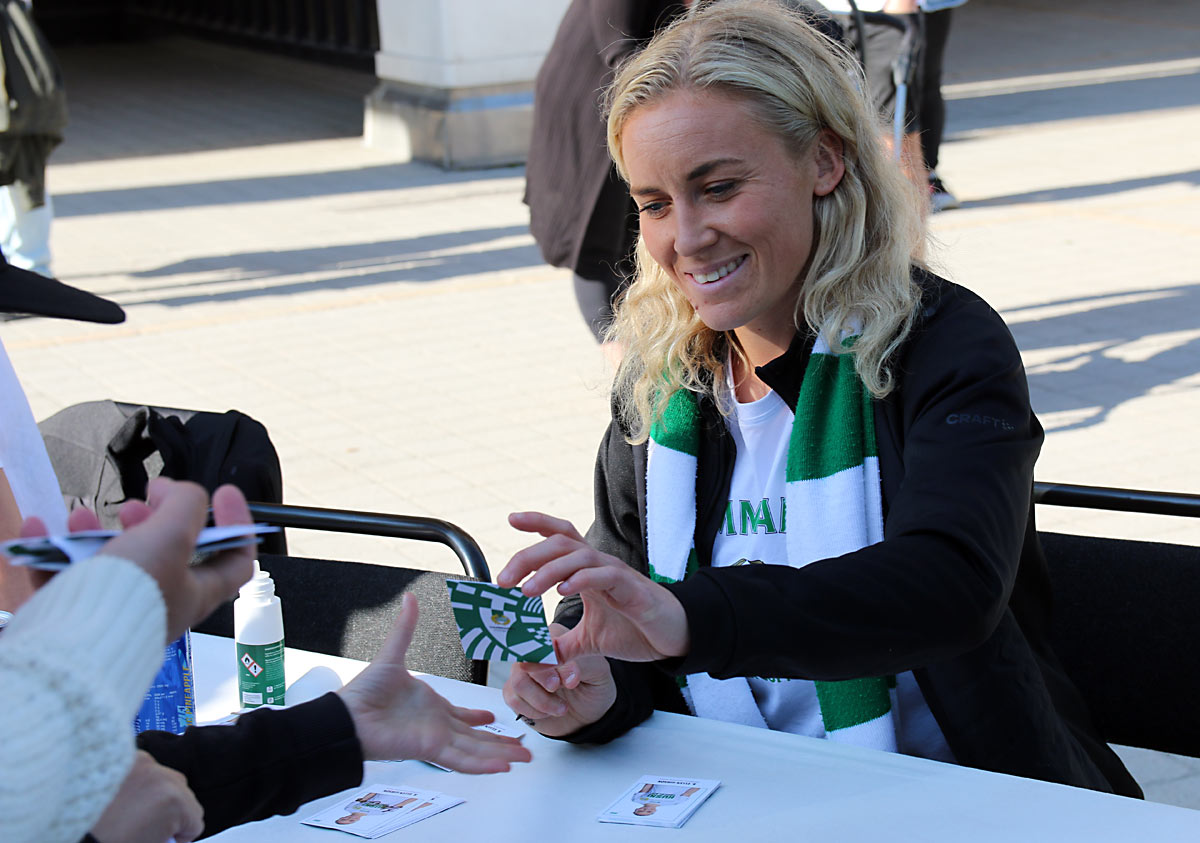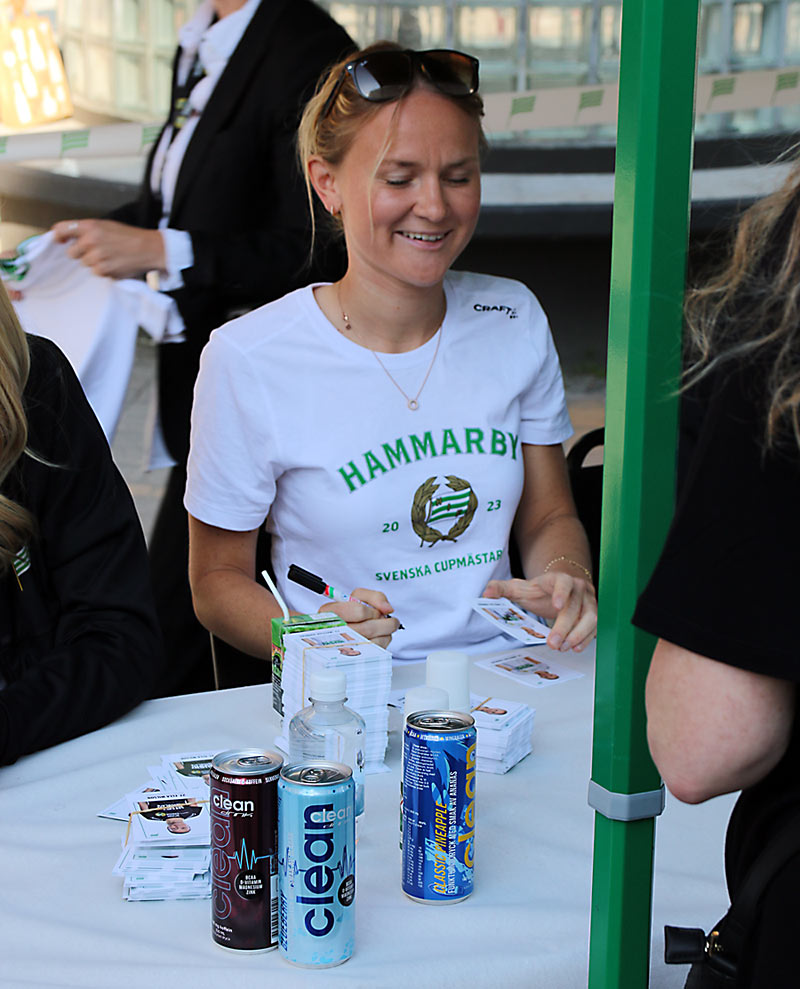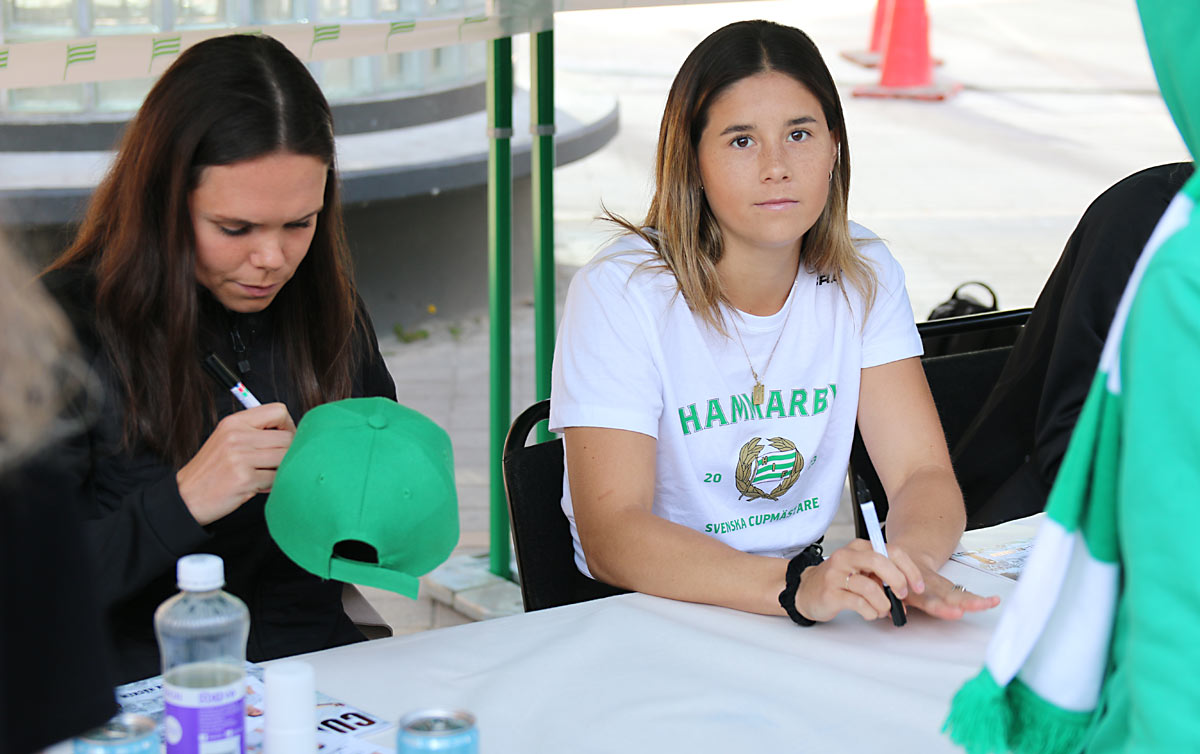 Cupfinalen inför drygt 17 000 på Söderstadion/Tele2 Arena blev inte så spännande som väntat. BK Häcken blev mer eller mindre krossat med 3-0. Den allsvenska finalen blev desto mer gastkramande. Hammarby hämtade in sju poäng från VM-uppehållet på sommaren och tog det definitiva greppet i den näst sista omgången när Häcken ånyo krossades, nu inför 15 000, låt vara med bara 3-2 efter att Hammarby bjudit in motståndarna i en match som stod 3-0 efter 23 minuter. Ett rekordstort bortafölje fick fira SM-guldet i Norrköping. 7 000 jublande Hammarbyare, en siffra som kan vara ett världsrekord i damfotbollen (av resande engagerade supportrar) Försäsongen blev spännande med flera spelare både ut och in. Trotjänaren Emma Jansson lämnade för Rosengård. In kom landlsagsmeriterade Julia Roddar, senast från Washington Spririt, och hemvändande Lotta Ökvist, som bl a spelat i Manchester United och senast i Rosengård. Och laget levererade. Med undantag från några poängtapp i mitten av våren, främst borta mot väntade topplag, så sopade man rent med motståndarna. En höjdpunkt var naturligtvis utskåpningen med 3-0 av svenska mästarna BK Häcken i cupfinalen, inför drygt 17 000 på Nya Söderstadion, den första mästerskapssegern utomhus för damlaget sedan cupsegern 1995. I juni utsågs Madelen Janogy till månadens spelare av sajten Elitfotboll Dam. Hammarby fortsatte att delta i guldjakten under hösten trots att både Maika Hamano (tillbaka till Chelsea efter skada) och Kyra Cooney-Dross (såldes till Arsenal) försvann efter VM. I oktober satte målvakten Anna Tamminen nytt rekord vad gäller att hålla nollan länge. Det nya rekordet lyder på 757 minuter. Det tidigare rekorde innehades av Älvsjömålvakten Eva Larsson och var 26 år gammalt. Redan från säsongsstart var Madelen Janogy och Jonna Andersson bosatta i A-landslaget. Senare kom även Matilda Vinberg in i truppen. I februari fick Emma Westin chansen i U23-landslaget. Hon ersatte Matilda Vinberg som tvingades tacka nej. Vinberg var tillbaka i laget i dubbellandskampen mot Kina i juli. Senare på hösten fick Ellen Wangerheim spela med U23. Smilla Holmberg spelade med F18 i en dubbellandskamp mot Norge i september. Hon representerade även F19 i EM-kvalet. I F17-landslaget spelade Bella Andersson, Smilla Holmberg och Lykke Ihrfelt liksom Carmen Cernjul. Flera Hammarbyspelare fick delta i F16-lagret på Bosön i mars. Lovisa Delby, Ida Frodestedt och Amanda Grahn. Frodestedt och Carmen Cernjul deltog sen i en fyrlagsturnering i Portugal i maj. I F15 spelade Roos Huitzing i en dubbellandskamp mot Norge i Visby.Ytterligare två spelare representerade laget under året; Inés Lorenius och Doris Petz. Hammarbys representation i utländska landslag var många. Simone Boye Sörensen spelade för Danmark och Smilla Vallotto för Schweiz. VM i Australien/Nya Zeeland i juli/augusti blev ett mästerskap med massivt Hammarbyinslag. I det svenska landslaget återfanns nuvarande spelarna Madelen Janogy och Jonna Andersson samt tidigare Magdalena Eriksson, Hanna Lundkvist och Filippa Angeldahl. Simone Boye Sørensen representerade Danmark, Maika Hamano Japan och Kyra Cooney-Dross och Courtney Nevin Australien. Bland förbundskaptenerna återfanns Pia Sundhage i Brasilien, Peter Gerhardsson i Sverige och Tony Gustavsson i värdlandet Australien. Två flicklag vann sin klass i Gothia Cup i Göteborg. Det var Flickor 12 och flickor 14. Allsvenskan230326 (Söderstadion/Tele2 Arena)Hammarby-Vittsjö 2-0 (0-0) 1-0 56 Madelen Janogy (Adelina Engman), 2-0 76 Vilde Hasund (Madelen Janogy) Utv, Vittsjö: Hanna Ekengren (95) Varningar, Vittsjö: Katrina-Lee Gorry, Jutta Rantala, Nellie Persson Domare: Tess Olofsson/Almira Spahic, Ida Kellström, Stefan Jovanovic Publik: 6 125 230401 (Studenternas) Uppsala-Hammarby 0-2 (0-1) 0-1 8 Matilda Vinberg (Madelen Janogy), 0-2 92 Sara Kanutte Fornes (Adelina Engman) Domare: Hanna Laajanen/Alexander Milovanovic, Leonora Heimdahl, Camilla Friberg Publik: 649 230415 (Hammarby IP) Hammarby-Växjö 6-1 (2-1) 1-0 18 Maika Hamano (Emma Westin), 1-1 24 Olivia Mattsson, 2-1 27 Jonna Andersson, 3-1 46 Maika Hamanao, 4-1 56 Julia Roddar (Kyra Cooney-Cross), 5-1 61 Matilda Vinberg, 6-1 79 självmål Domare: Maral Mirzai/Elsa Wisting, Tilde Larsson, August Köpberg Publik: 1 572 230424 (Linköping Arena) Linköping-Hammarby 1-3 (1-2) 1-0 16 Cathinka Tandberg (Yuka Momiki), 1-1 31 Matilda Vinberg, 1-2 44 Maika Hamano, 1-3 80 Maika Hamano Varningar, Linköping: Nellie Karlsson Hammarby: Simone Boye Sörensen Domare: Hanna Laajanen/Emelie Elfstrand, Alexander Öhnedal, Paul Shamoun Publik: 1 186 230501 (Stadion) Djurgården-Hammarby 0-1 (0-1) 0-1 20 Simone Boye Sørensen (Kyra Cooney-Cross) Varningar, Djurgården: Ebba Hed, Hayley Dowd, Matilda Plan Utvisning, Hammarby: Madelen Janogy (65) Domare: Tess Olofsson/Elsa Wisting, Josefine Bastås, Cecilia Ekwall Publik: 3 871 230504 (Hammarby IP) Hammarby-IFK Kalmar 8-0 (4-0) 1-0 6 Matilda Vinberg (Thea Sørbo), 2-0 27 Simone Boye Sörensen, 3-0 45+2 Sara Kanutte Fornes (Matilda Vinberg), 4-0 45+5 Matilda Vinberg, 5-0 67 Thea Sörbo, 6-0 70 Ellen Gibson, 7-0 74 Sara Kanutte Fornes (Thea Sørbo), 8-0 92 Emma Westin (Smilla Holmberg) Domare: Maral Mirzai/Camilla Stendahl, Leonora Heimdahl, Cecilia Ekwall Publik: 832 230508 (Bravida Arena) Häcken-Hammarby 1-0 (1-0) 1-0 39 Rosa Kafaji (Julie Blakstad) Varningar, Hammarby: Julia Roddar, Lotta Ökvist Domare: Eva Svärdsudd/Camilla Stendahl, Josefine Bastås, Jure Sosic Publik: 2 014 230514 (LF Arena) Piteå-Hammarby 2-1 (1-1) 1-0 18 Ellen-Löfqvist, 1-1 31 Sara Kanutte Fornes (Madelen Janogy), 2-1 51 Anam Imo (Katrina Guillou) Varningar, Piteå: Ásla Johannesen Hammarby: Vilde Hasund, Hanna Folkesson Domare: Andreas Forsberg/Alexander Öhnedal, Tilde Larsson, Simon Svensson Publik: 1 847 230522 (Hammarby IP) Hammarby-Rosengård 2-2 (2-1) 0-1 7 Olivia Schough, 1-1 44 Thea Sörbo (Matilda Vinberg), 2-1 45 M